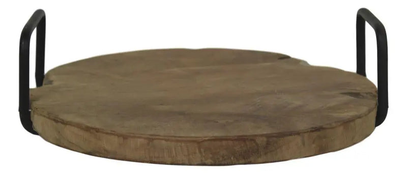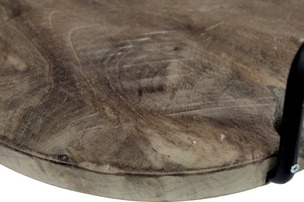 מגש דקורטיבי מעץ טיק בשילוב ידיות ברזל