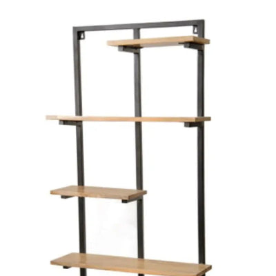 שישה מדפים ברוחבים שונים ממוקמים באופן מעניין ולא סימטרי.
