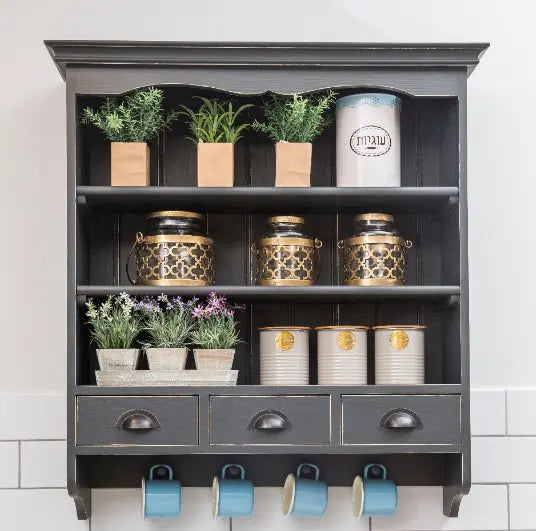 מערכת מדפים לתלייה- שידת תבלינים מרהיבה עשויה עץ אורן פיני מלא מעוצבת בסגנון פרובנס.