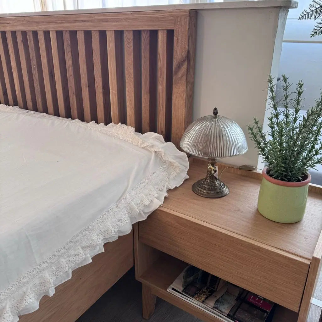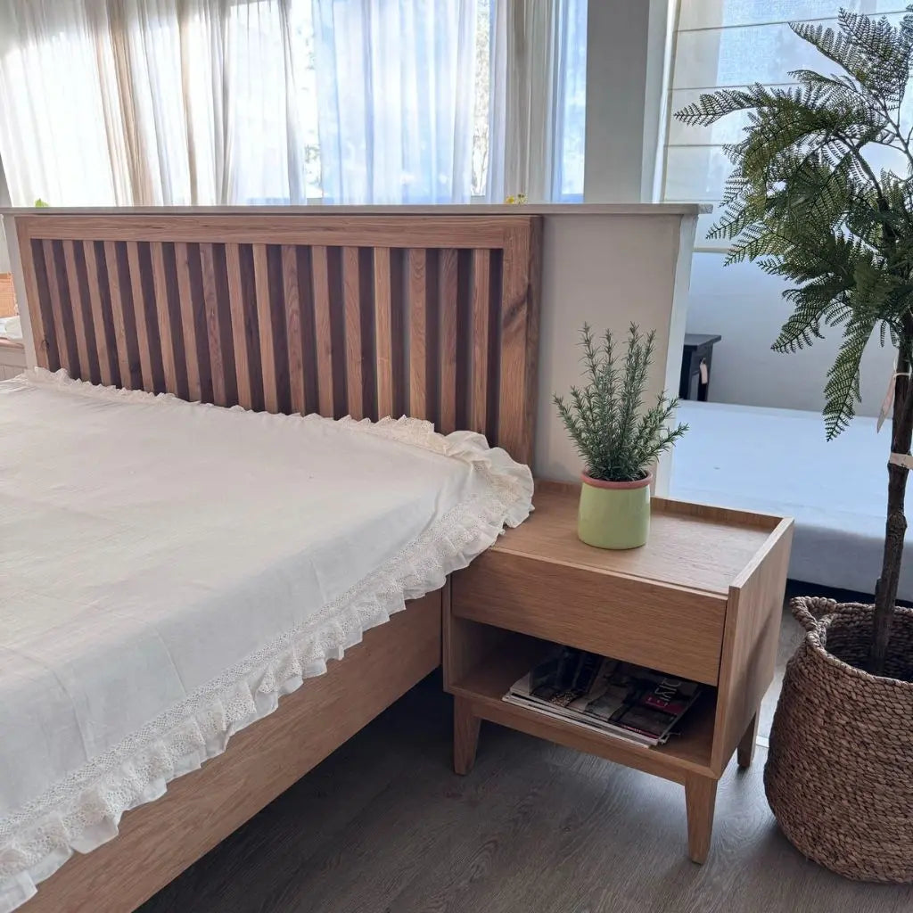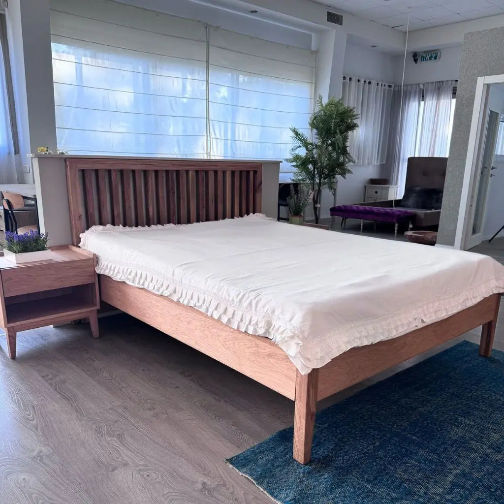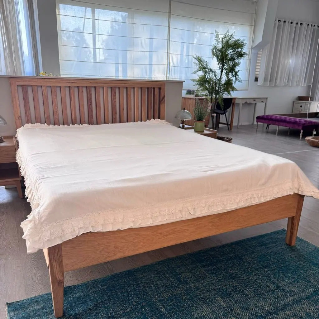 מיטה זוגית קלאסית עשויה מעץ אלון מלא ואיכותי, המעניק לה מראה חם ומזמין. העיצוב המוקפד של המיטה, עם קווים נקיים וזורמים, ישתלב בצורה מושלמת בכל סגנון עיצובי. עץ האלון האהוב ידוע בזכות עמידותו ויופיו הטבעי, הגוון החם של העץ מוסיף נופך יוקרתי ומרגיע המתאים בדיוק לחדרי שינה.