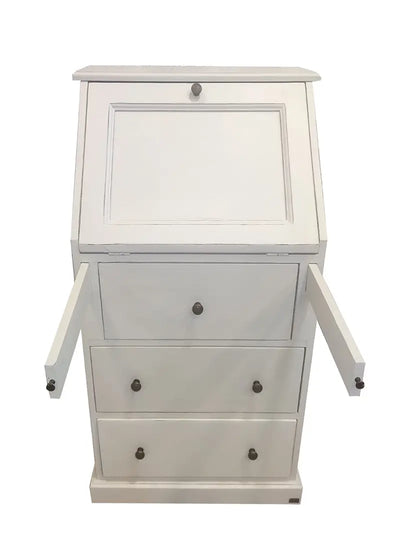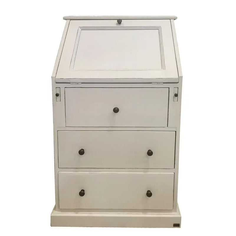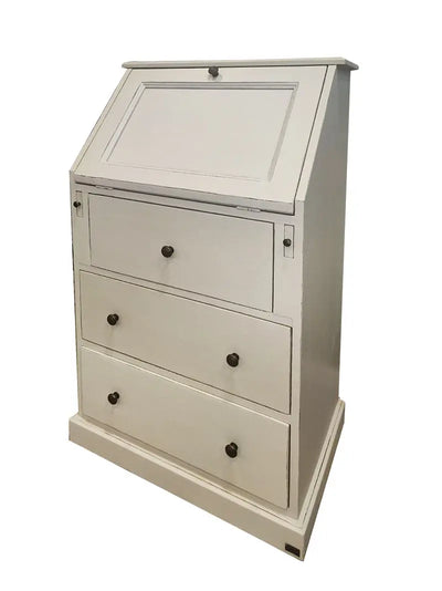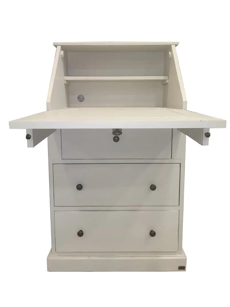 למכתבה שלוש מגירות ומדף נשלף מוסתר.