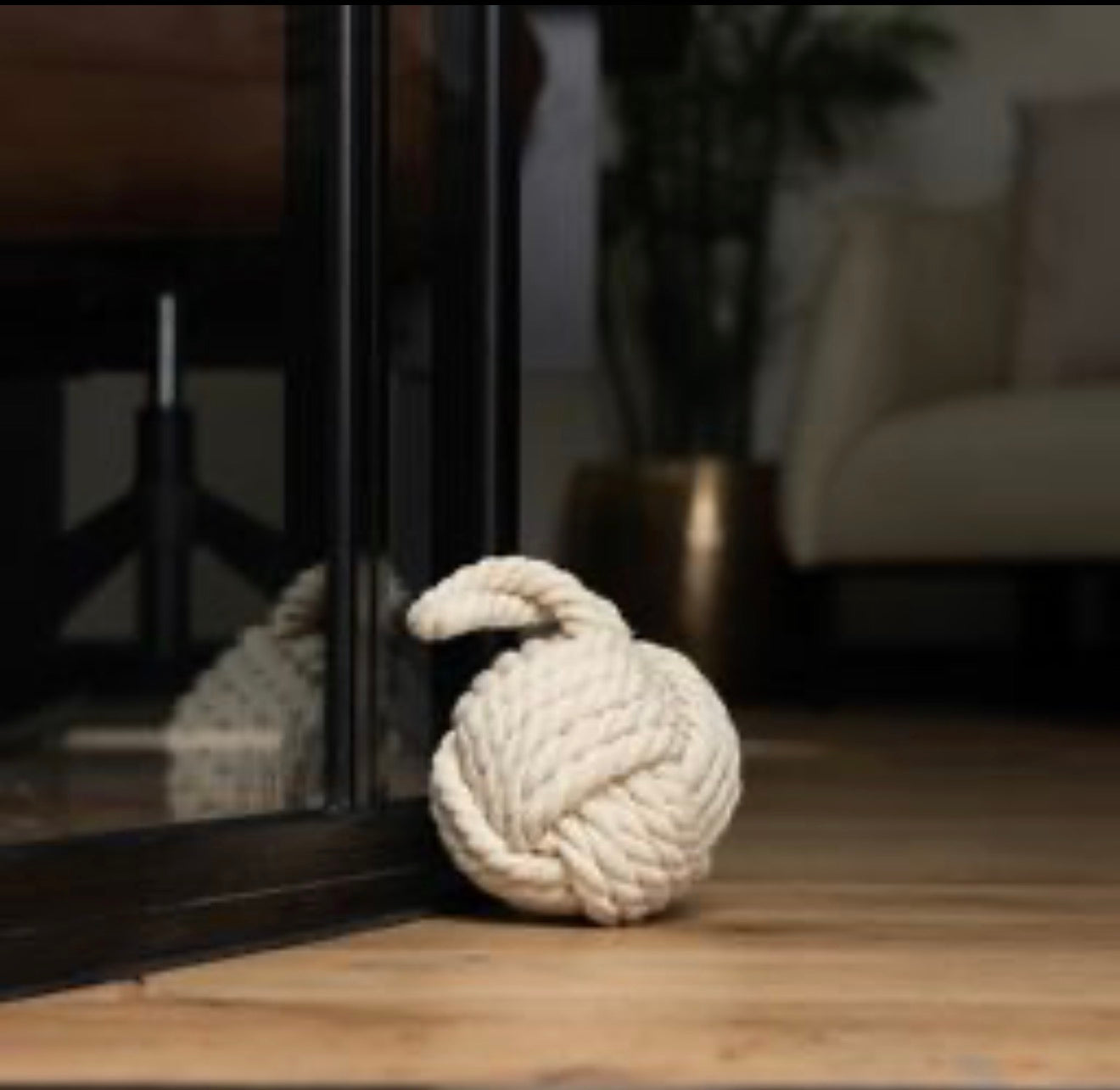 מעצור דלת דקורטיבי בעיצוב "כדור חבלים" המשלב מראה טבעי וחמים עם פונקציונליות גבוהה. מושלם לכל חדר, מעניק יציבות לדלת ומוסיף טאץ' עיצובי לבית.