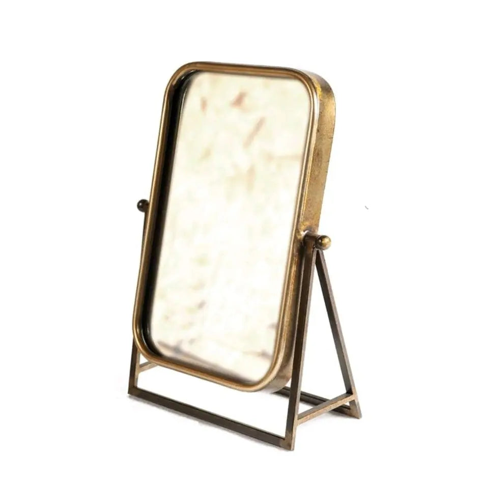 למראה מסגרת ובסיס מתכת מוזהבת.