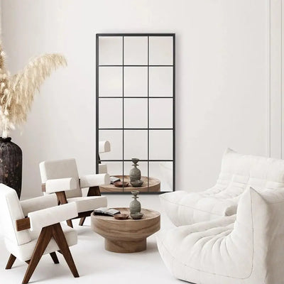 מראה מלבנית גדולה בעיצוב מיוחד.