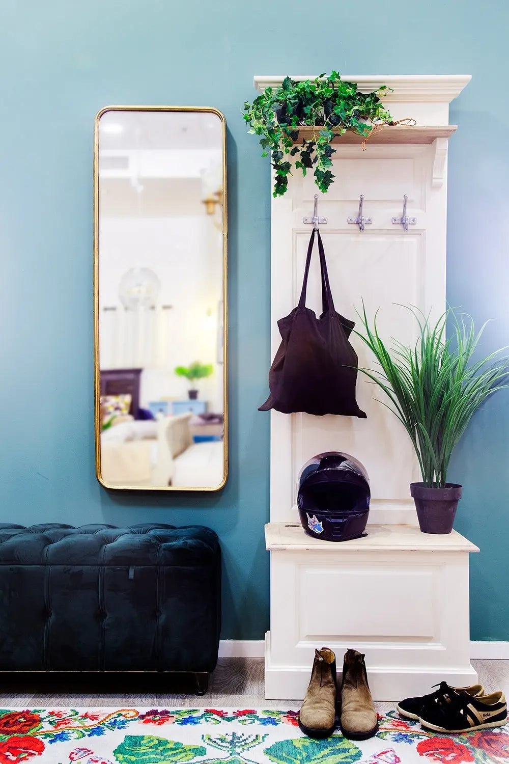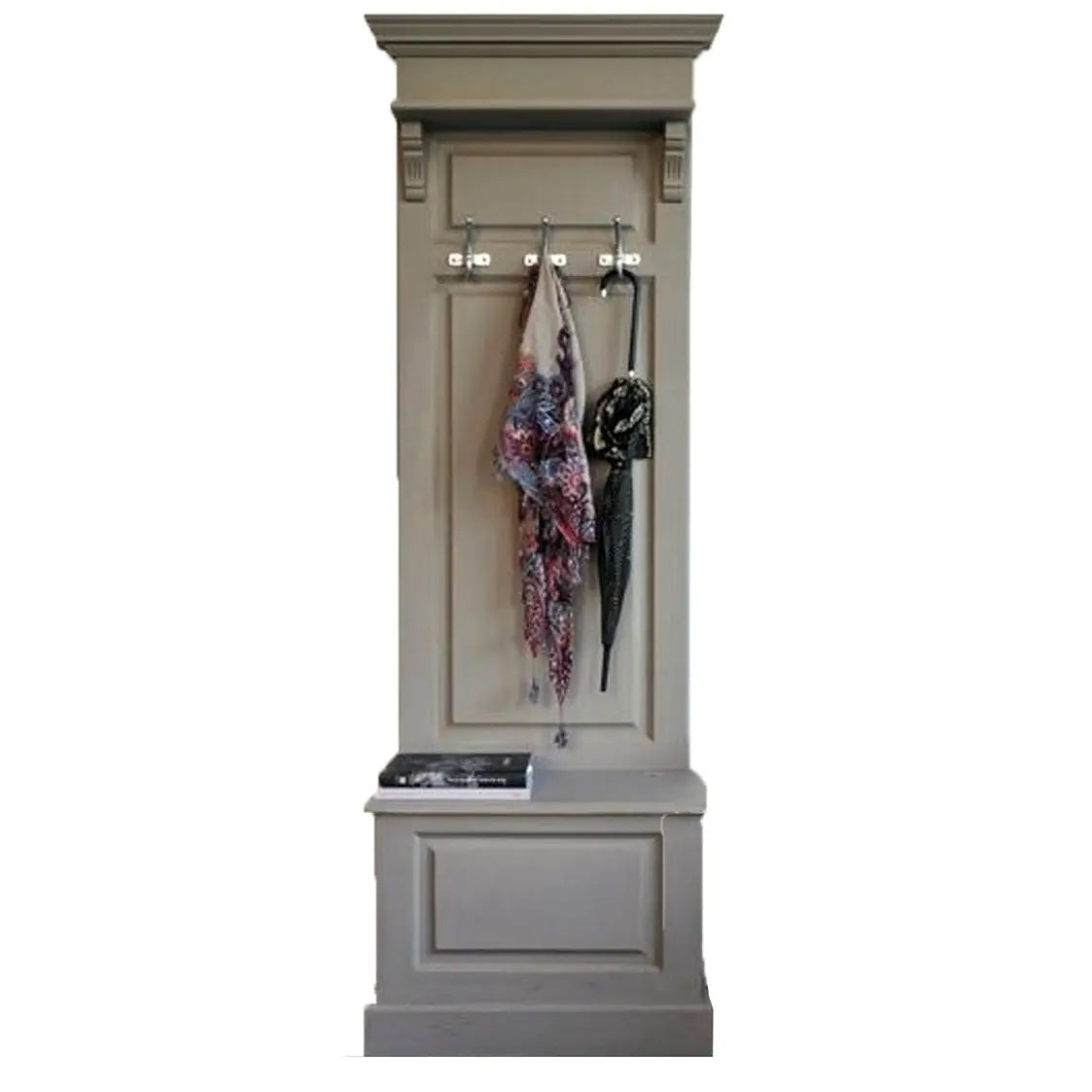 בחלקו התחתון של המתלה ישנו ארגז עץ נפתח לאחסון, המשמש גם כהדום לישיבה.
