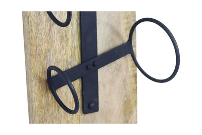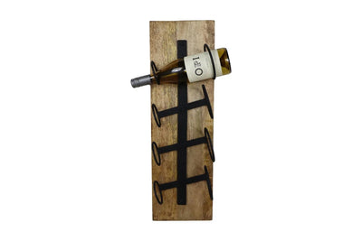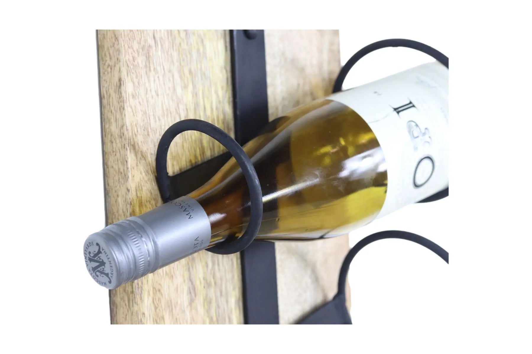 מתלה קיר מקסים עשוי עץ מנגו עם 4 מתלים מברזל לבקבוקי יין