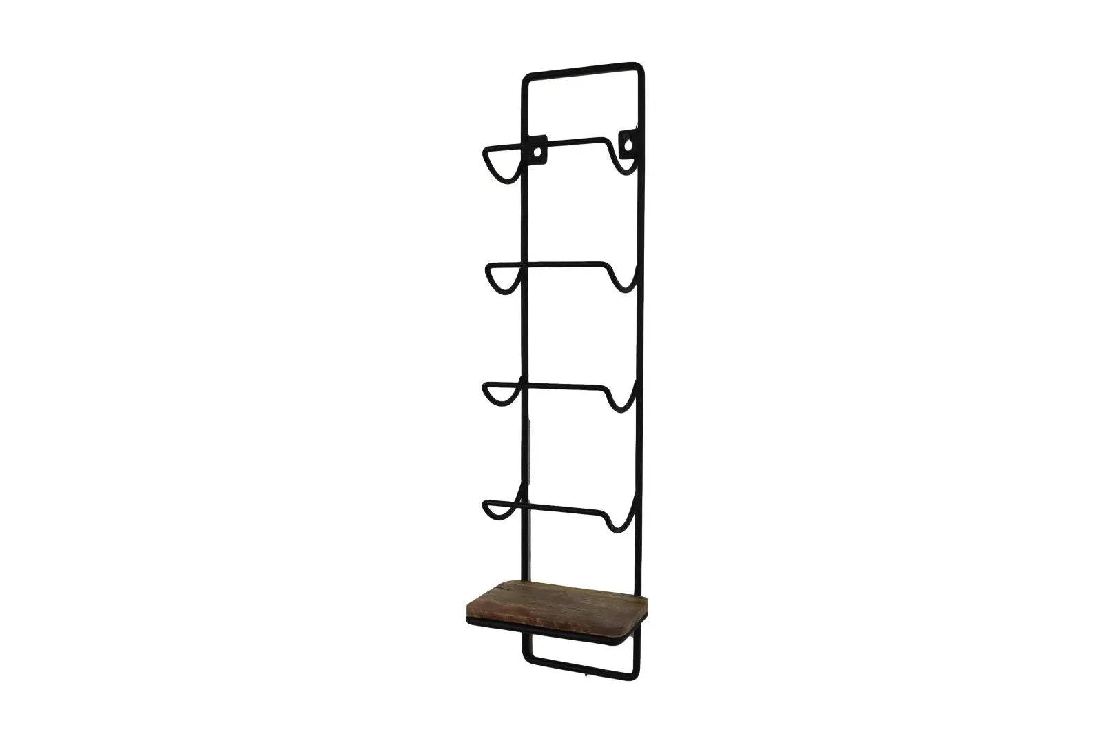 מתלה קיר מקסים עשוי ברזל עם 5 מתלים מברזל לבקבוקי יין
