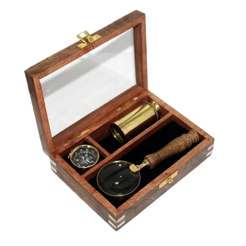 מצפן, טלסקופ וזכוכית מגדלת