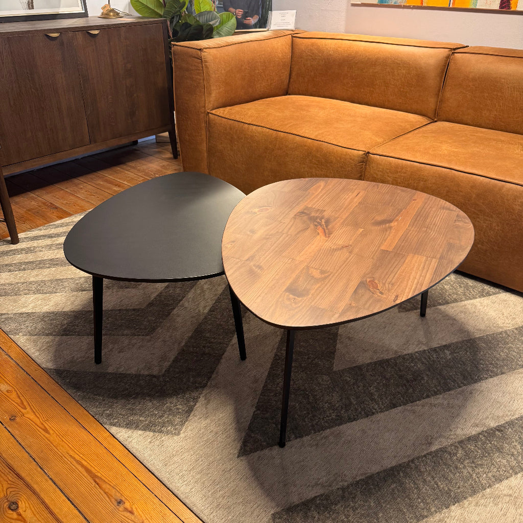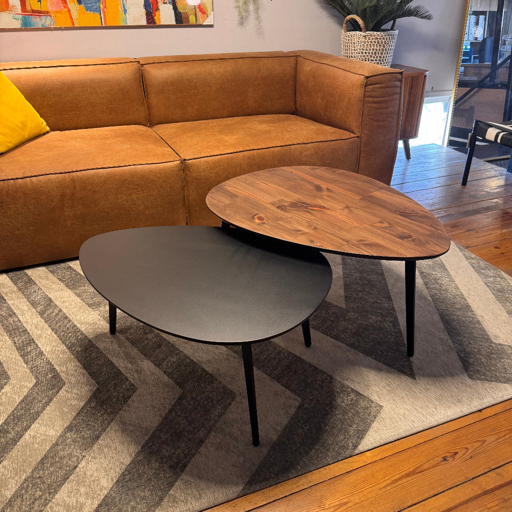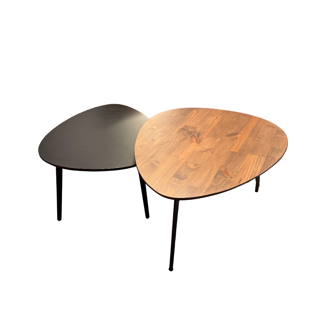 סט שולחנות סלון בצורת טיפה משתלבים זה בזה.