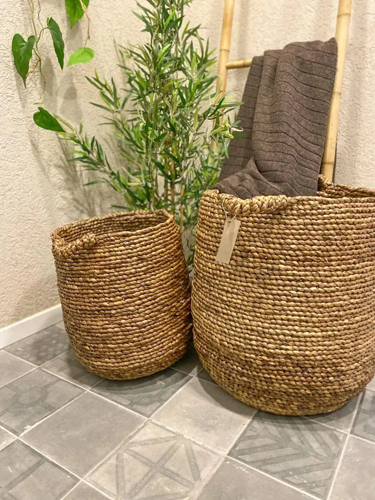 סט מקסים של 2 סלים גבוהים דקורטיבים לאחסון עשויות מקש בגוון טבעי