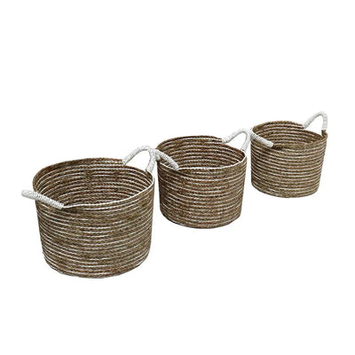 סט מקסים של 3 סלסלאות עגולות עשויות מקש