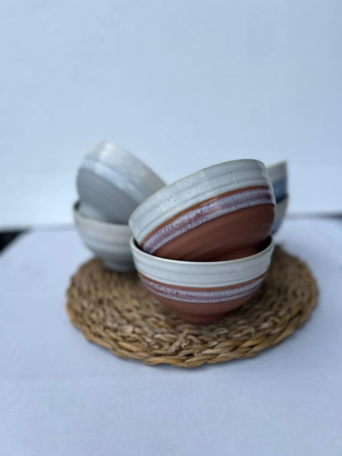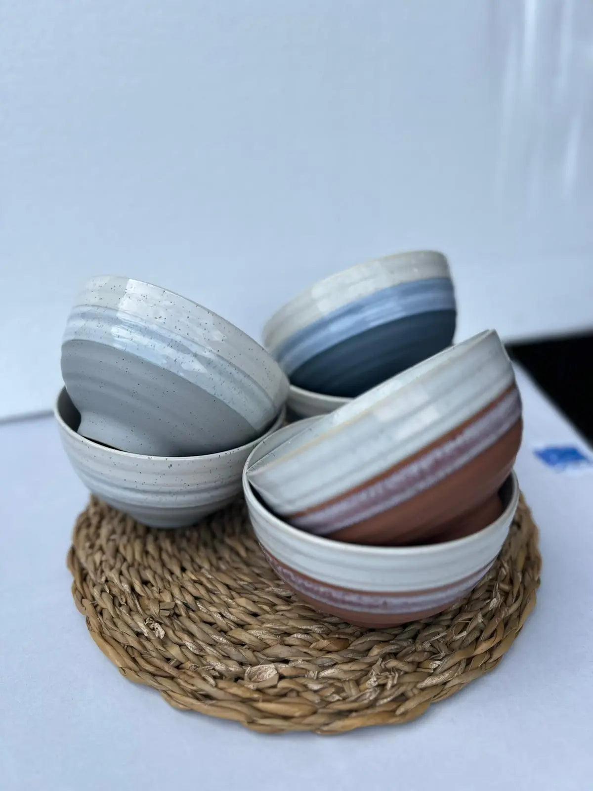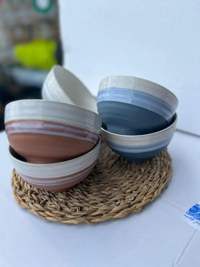 סט של 6 קעריות מקרמיקה מגיעים בצבעים פסטלים כחול/טרקוטה ואפור