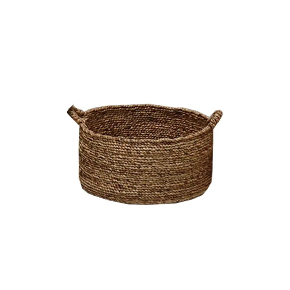 סלסלה עגולה מקש בגוון טבעי עם ידית חיצונית
