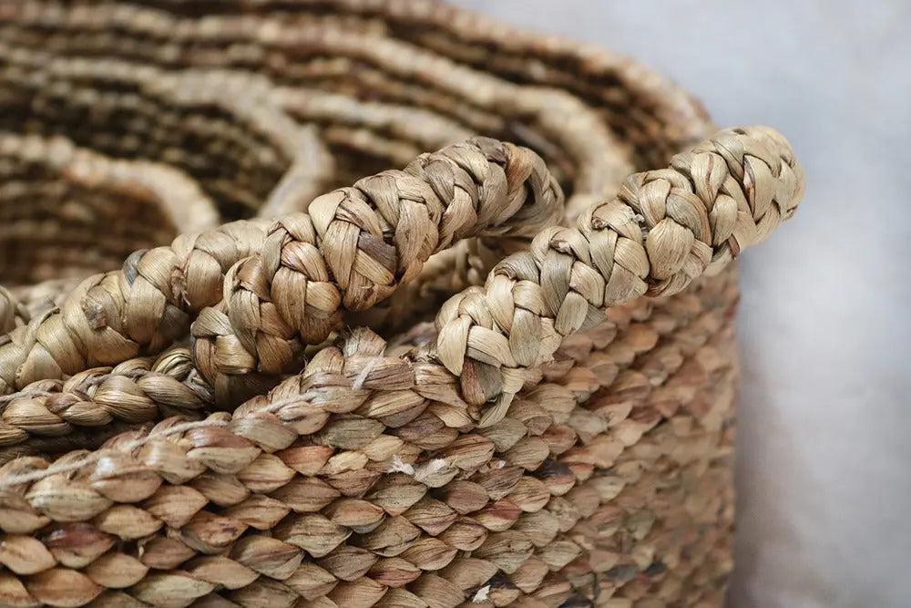 סלסלה עגולה מקש בגוון טבעי עם ידית חיצונית