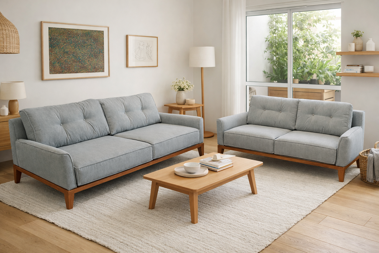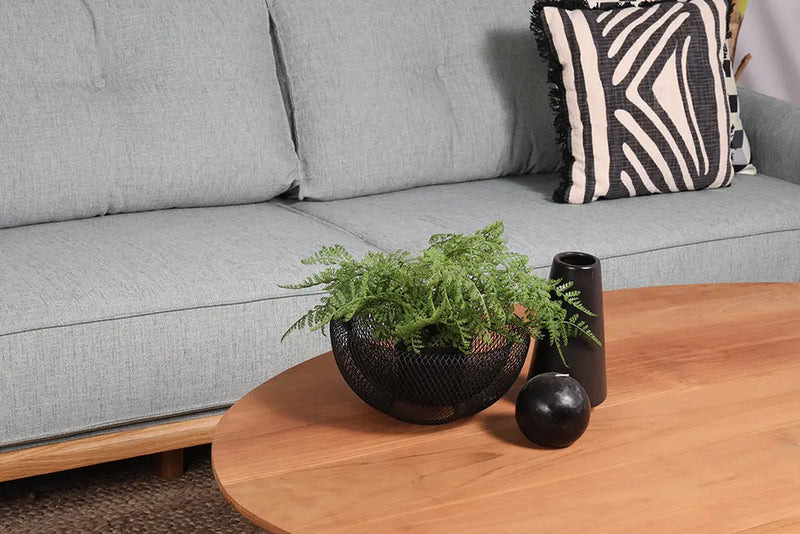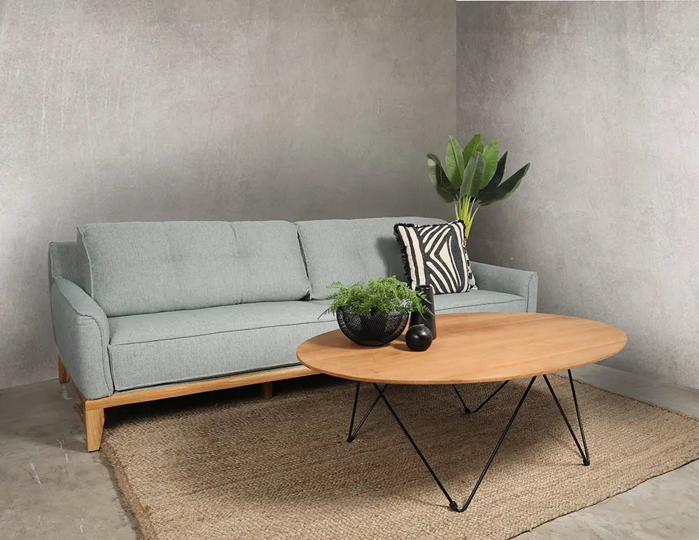 ספה בעיצוב כפרי בעלת קווים נקיים,