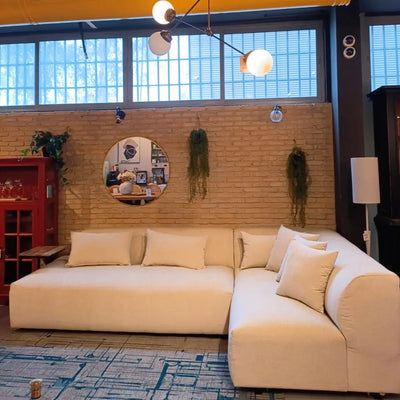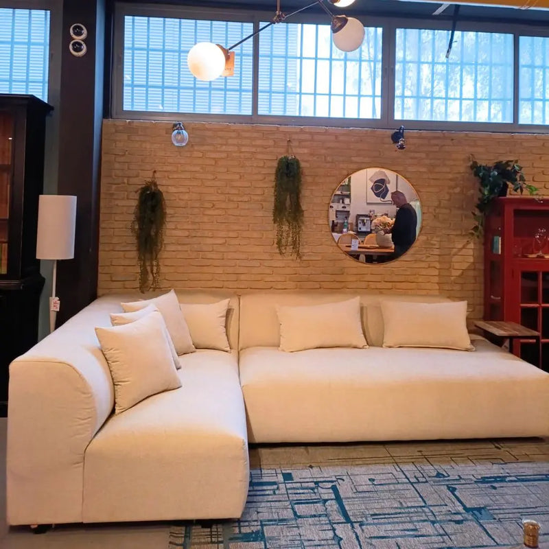 הספה עם 3 כריות גב +3 כריות מפנקות.