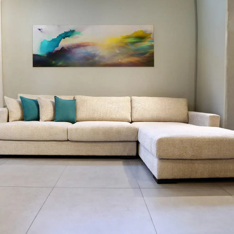 הספה עם 3 כריות גב +3 כריות מפנקות.