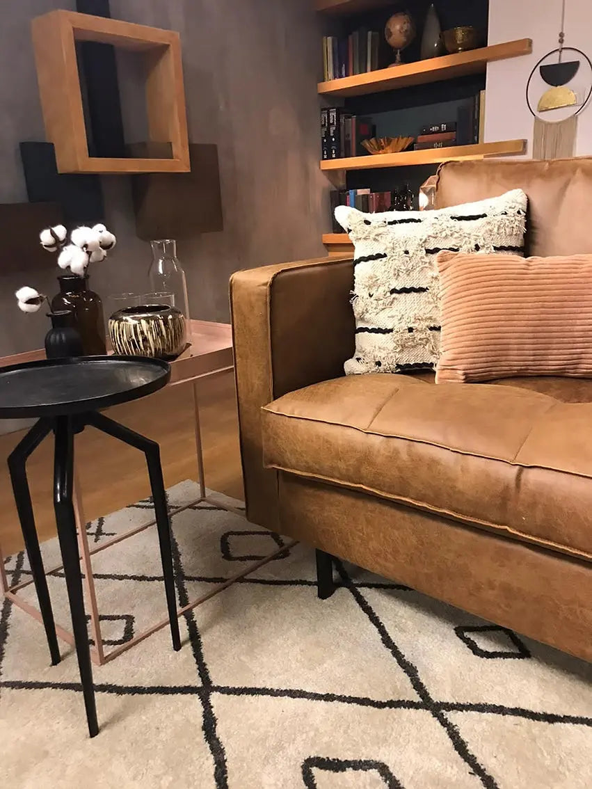 ספת תלת מושבית עשויה עור ממוחזר שילוב של 70% עור ממוחזר ו 30% פוליאסטר בעלת רגלי ברזל