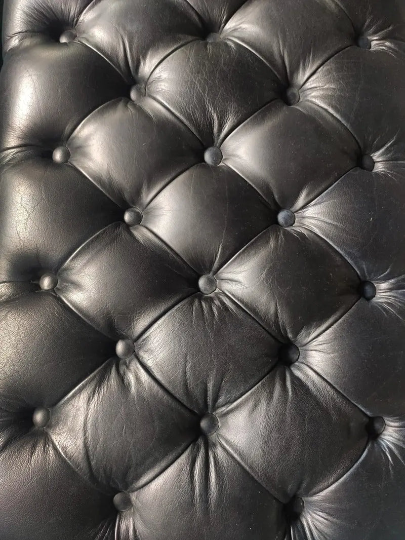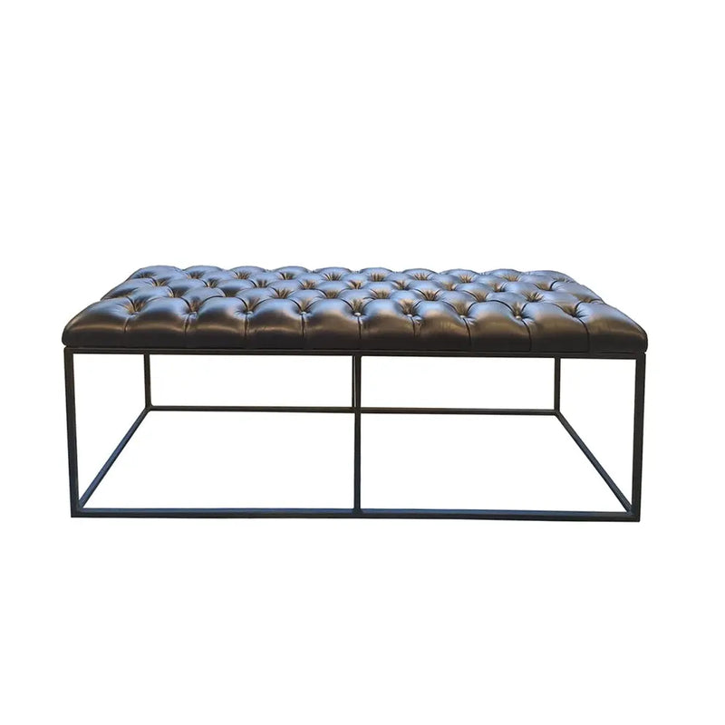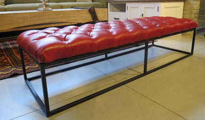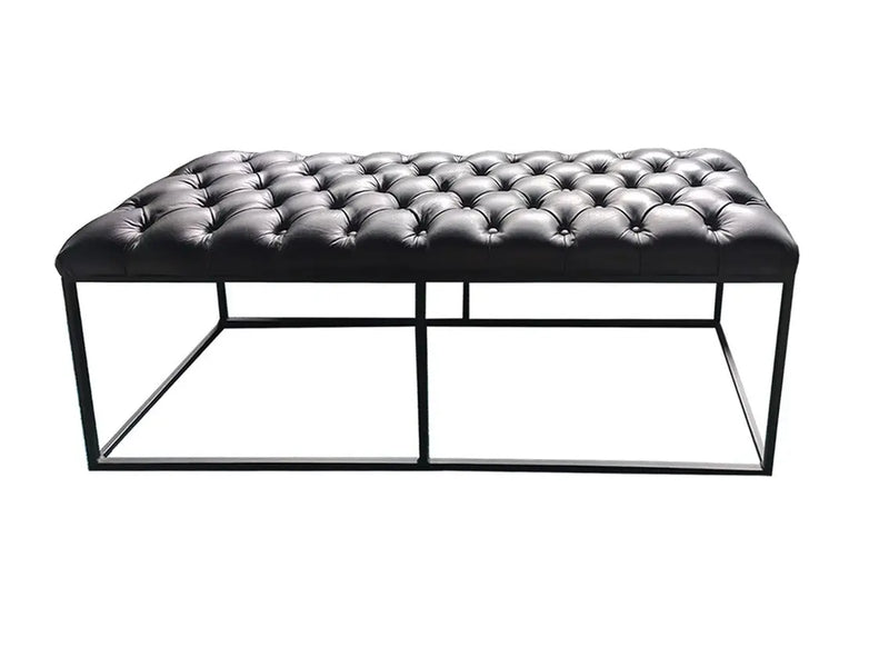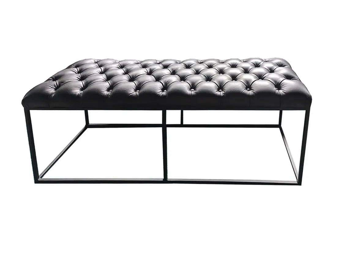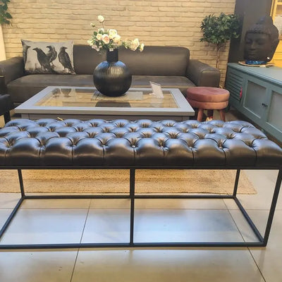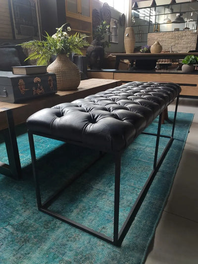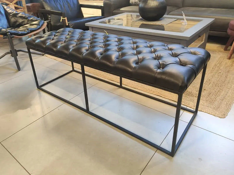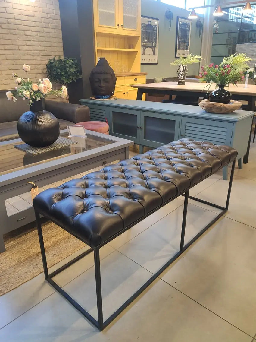 ספסל מודרני מעוצב עם מושב מעור פבאלו איכותי ורך למגע, בעל גוף ברזל יפהפה בצבע שחור.