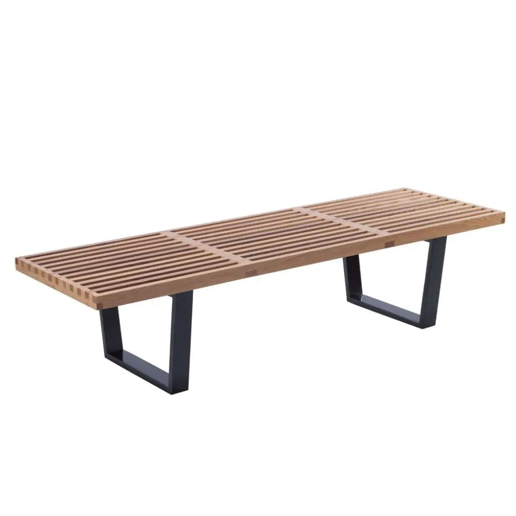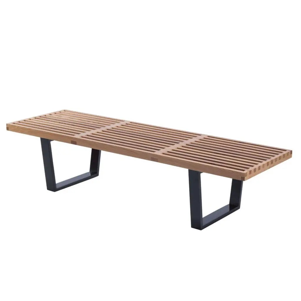 ספסל המתנה יפייפה משלד מתכת שחור עם מושב עץ טבעי