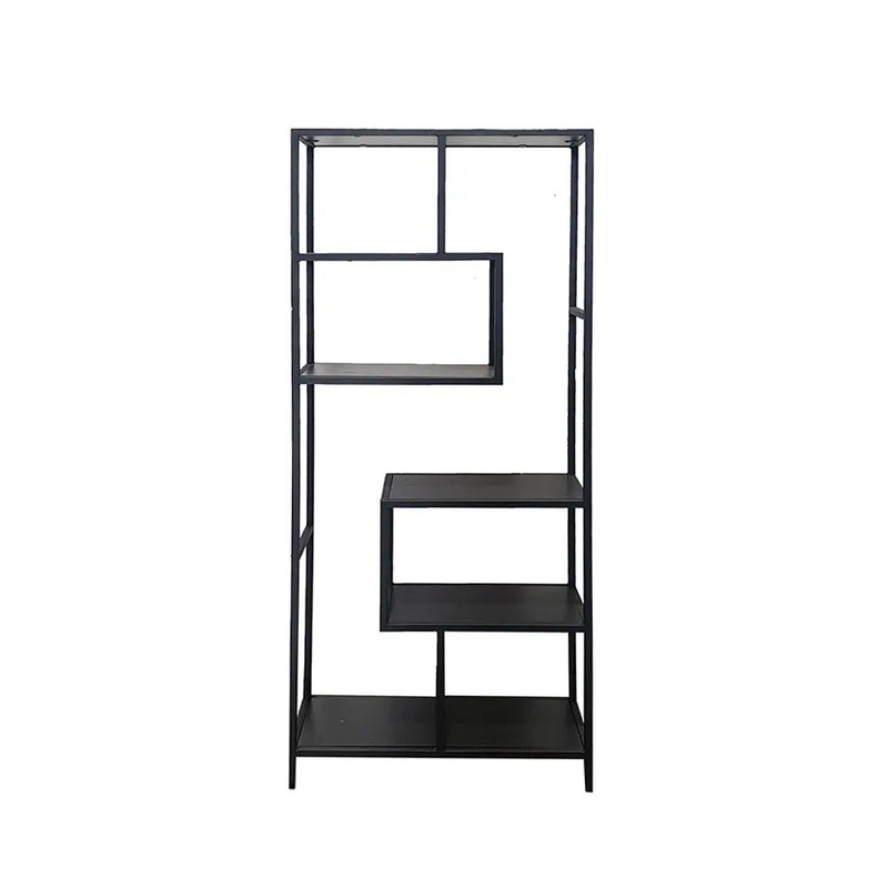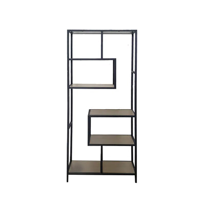ושישה מדפי עץ בצבע אגוז או שחור