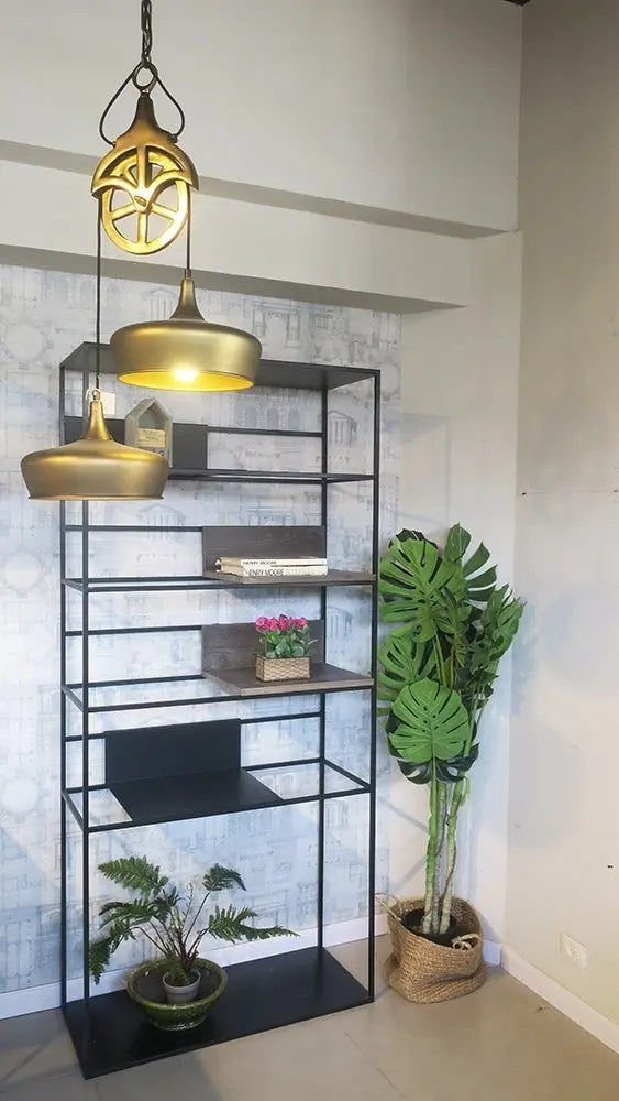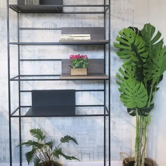 כוננית מדפים ממתכת בצבע שחור בסגנון מודרני