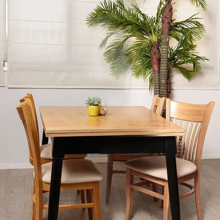 שולחן אוכל נפתח מעץ פורניר אלון מלא 140 ס"מ המתאים ל-8 עד 10 סועדים. הרגליים של שולחן האוכל עשויות מעץ בוק . שולחן אוכל הנפתח עד 240 ס"מ.