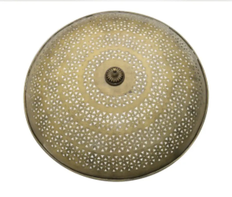 מנורה צמודת תקרה עשויה נחושת מעוטרת.