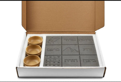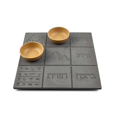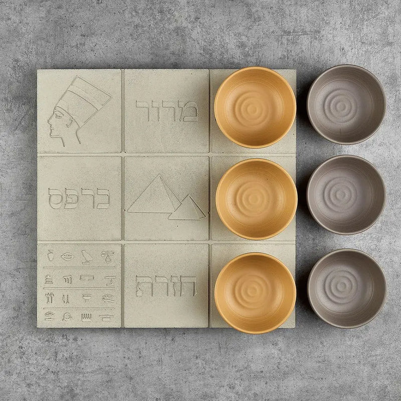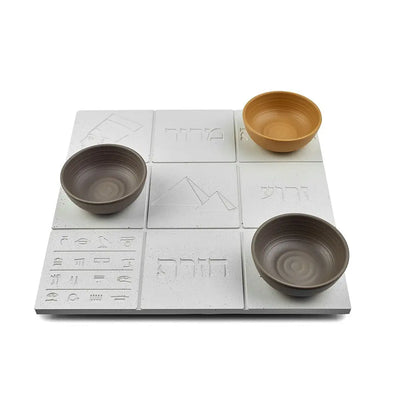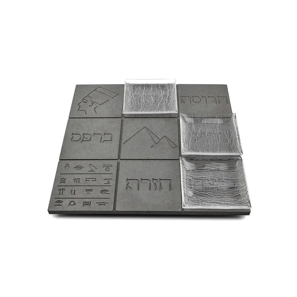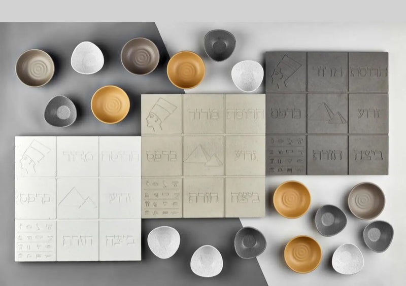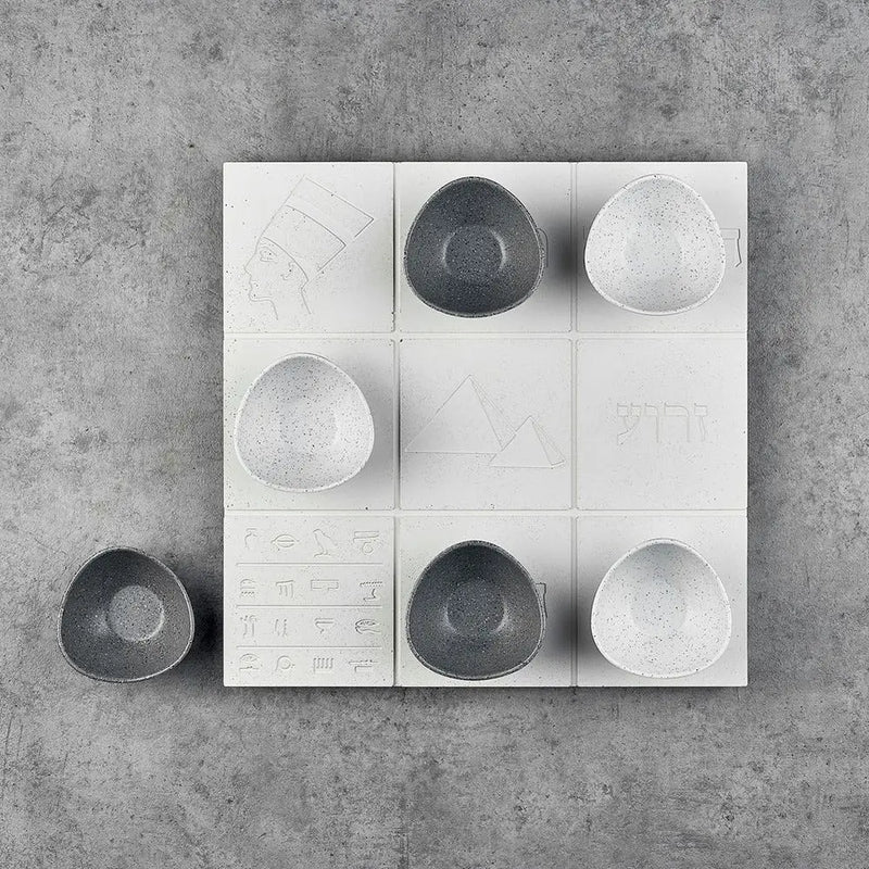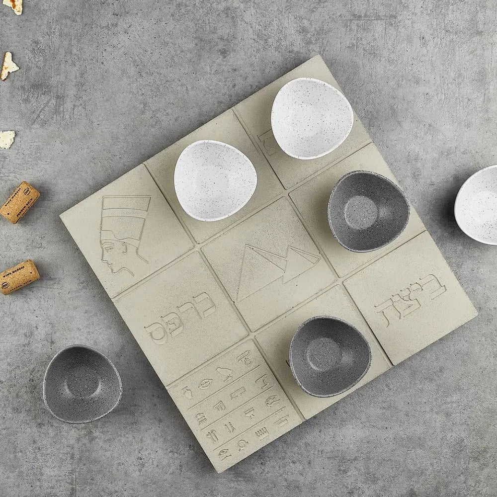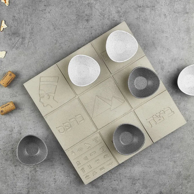 צלחת פסח בעיצוב ייחודי ומינימליסטי מבטון אדריכלי לקישוט שולחן סדר פסח עבודת יד