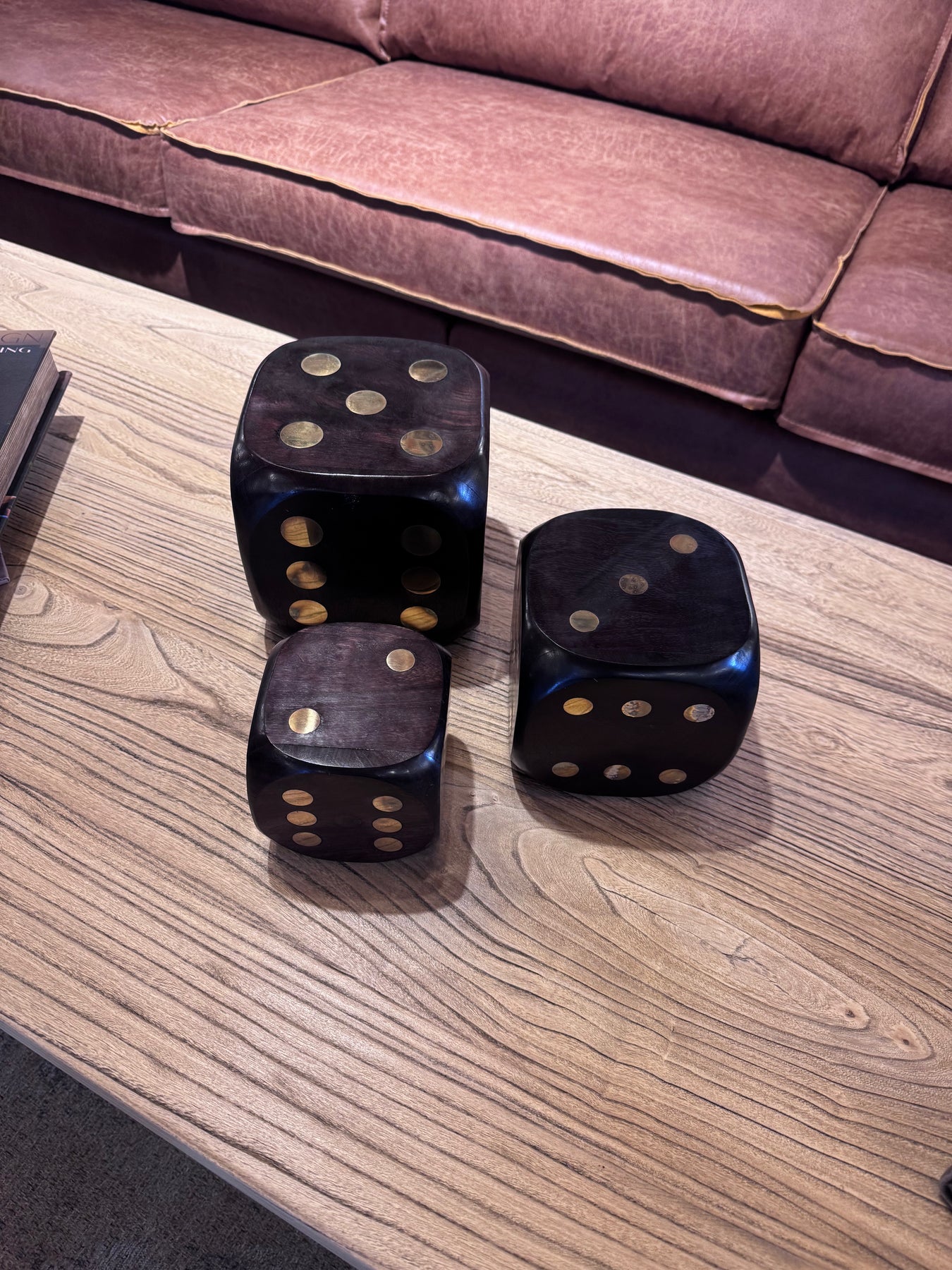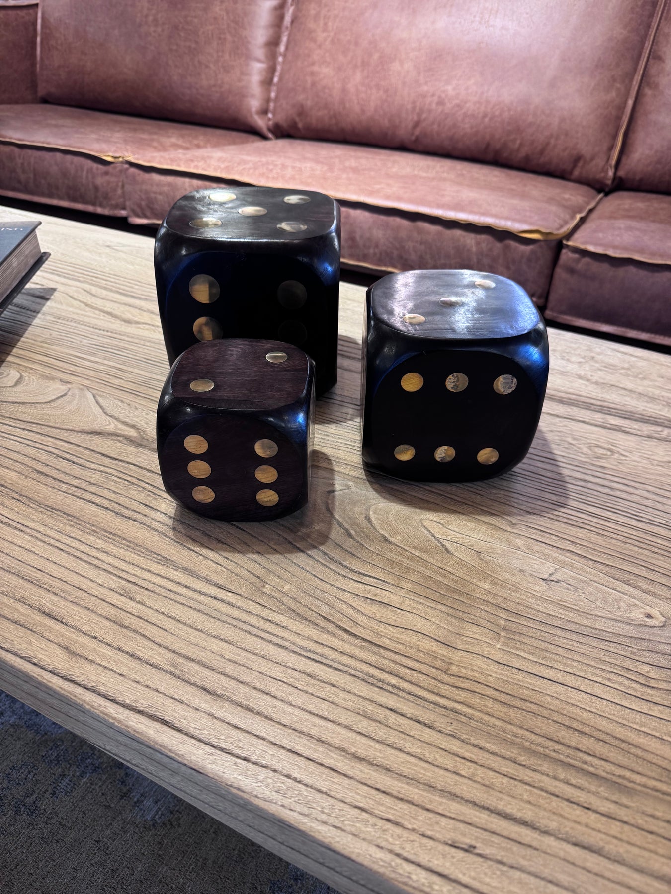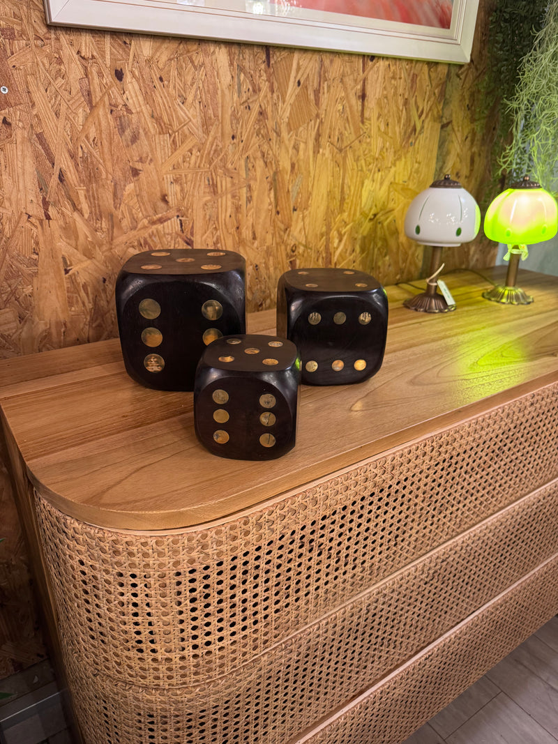 קובית עץ בצבע שחור או מעוצבת כקובית מזל.