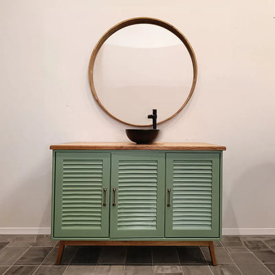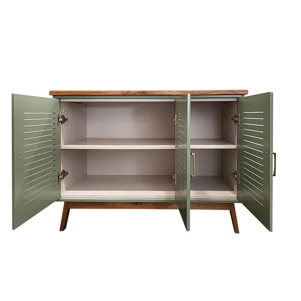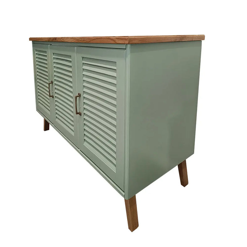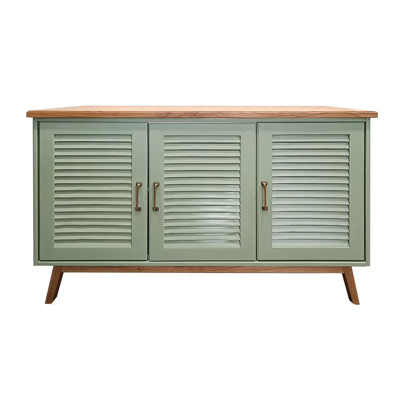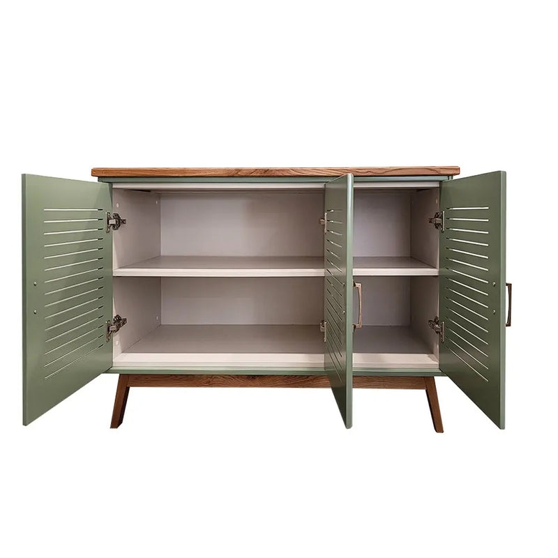 שידה מעוצבת בסגנון כפרי. לשידה 3 דלתות בעיצוב תריס ו 4 תאי אחסון גדולים .