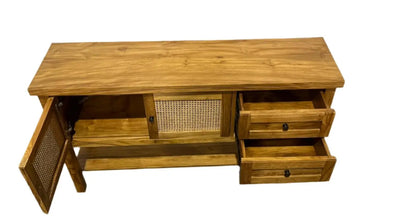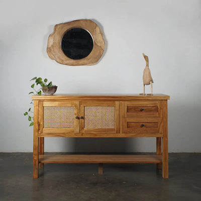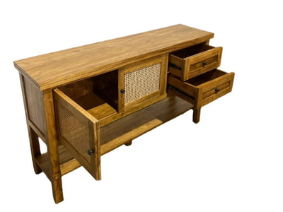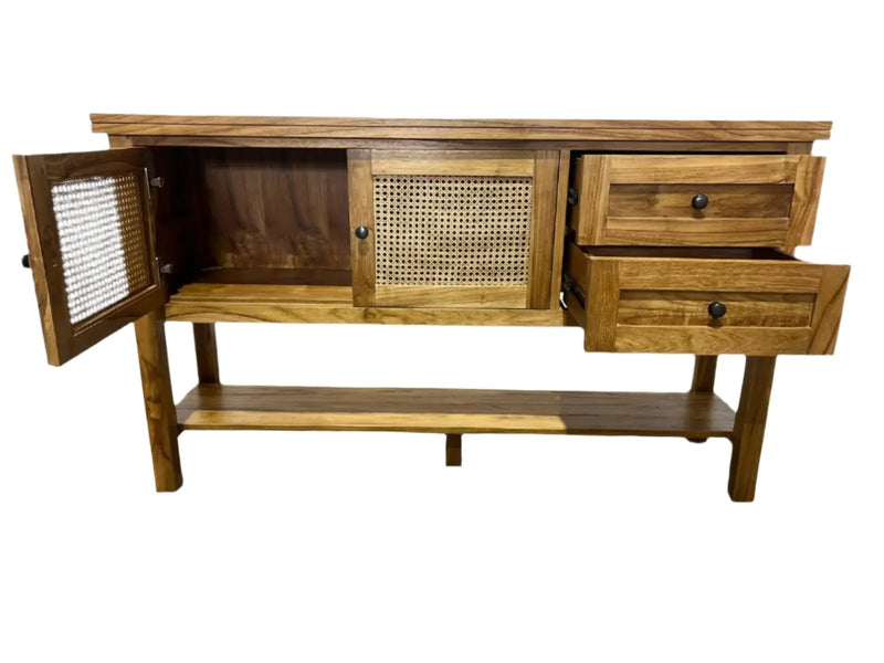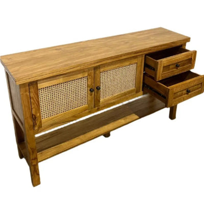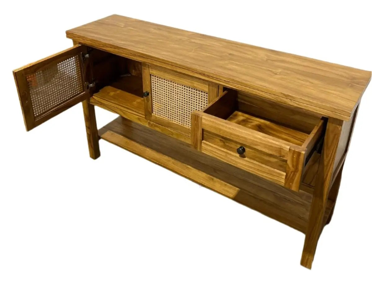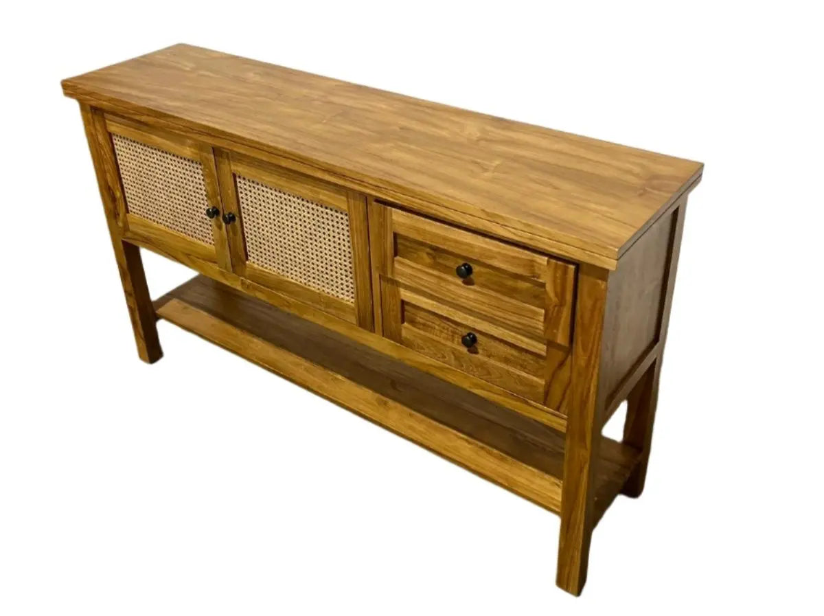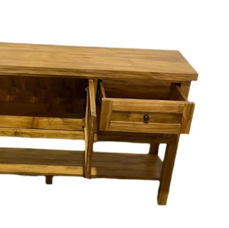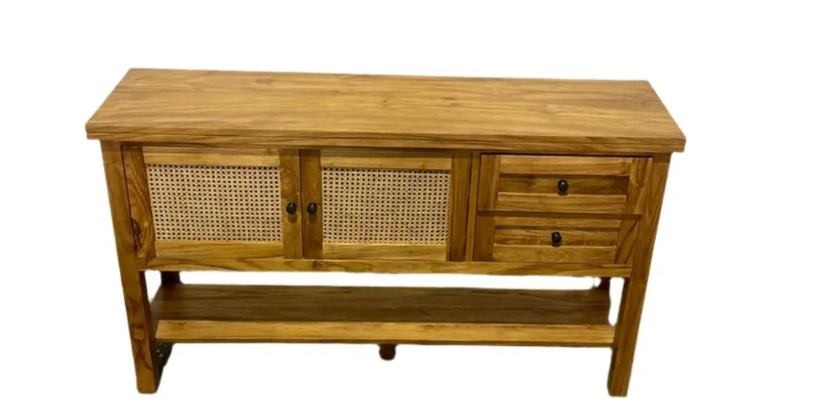 קונסולה מעץ טיק בשילוב 2 מגירות ודלתות