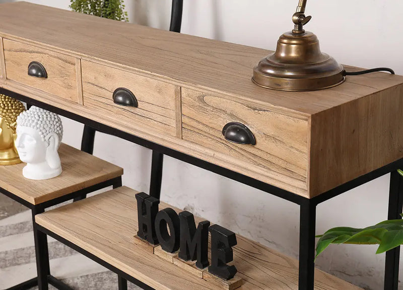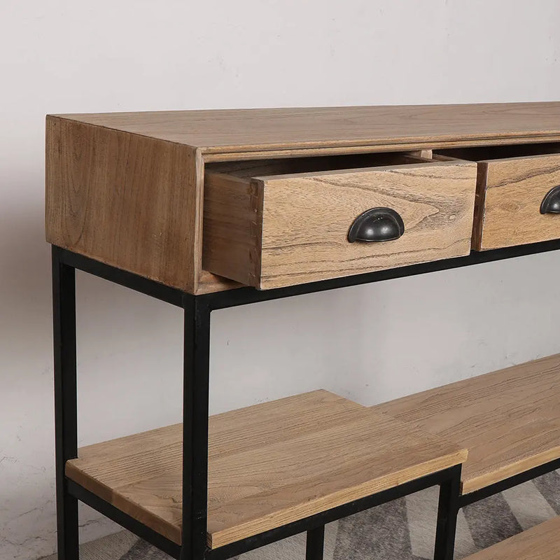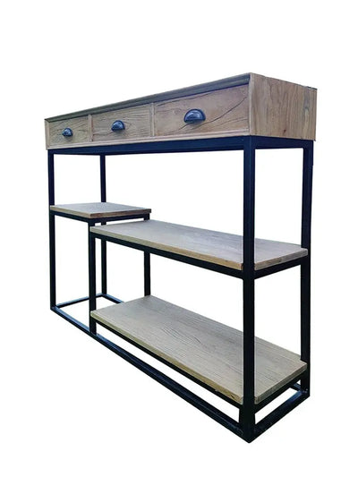 קונסולת ארנסט מעץ אלון מלא עם מדף