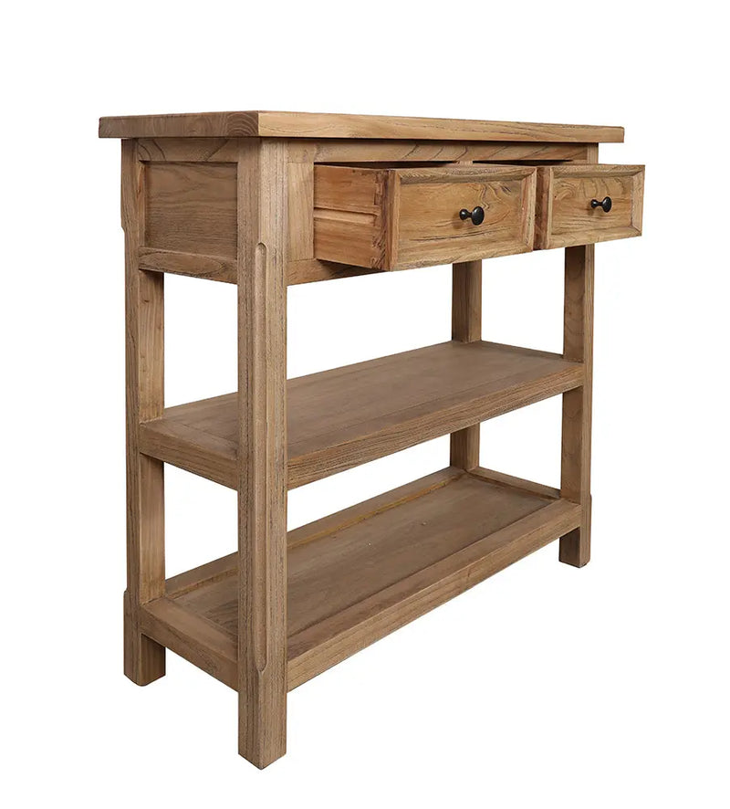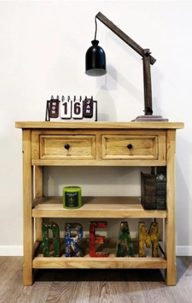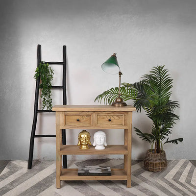 הקונסולה עשויה עץ אלון מלא בגוון טבעי
