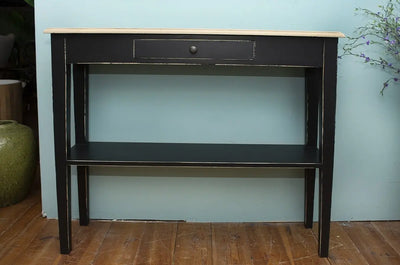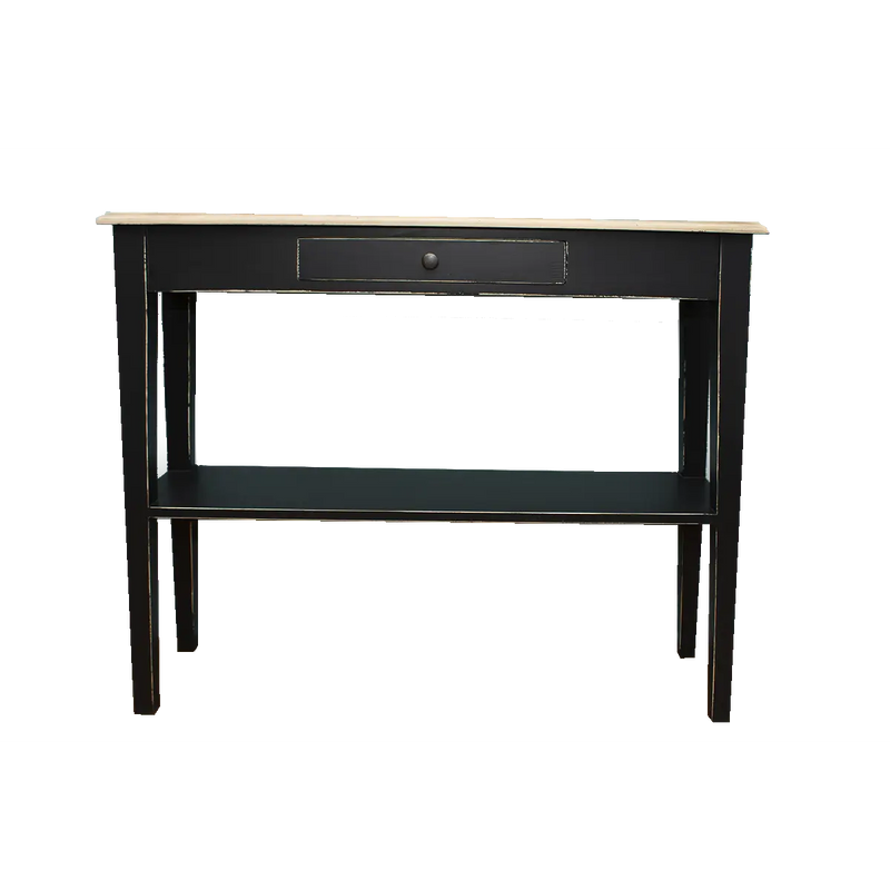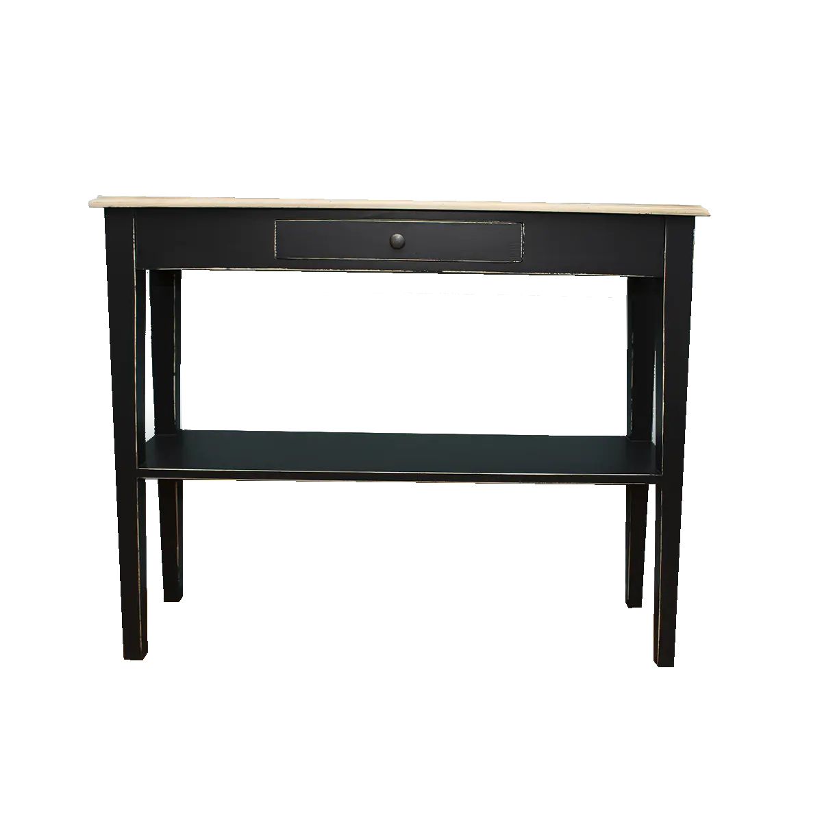 לקונסולה מגירה קטנה נשלפת ומדף תחתון רחב.