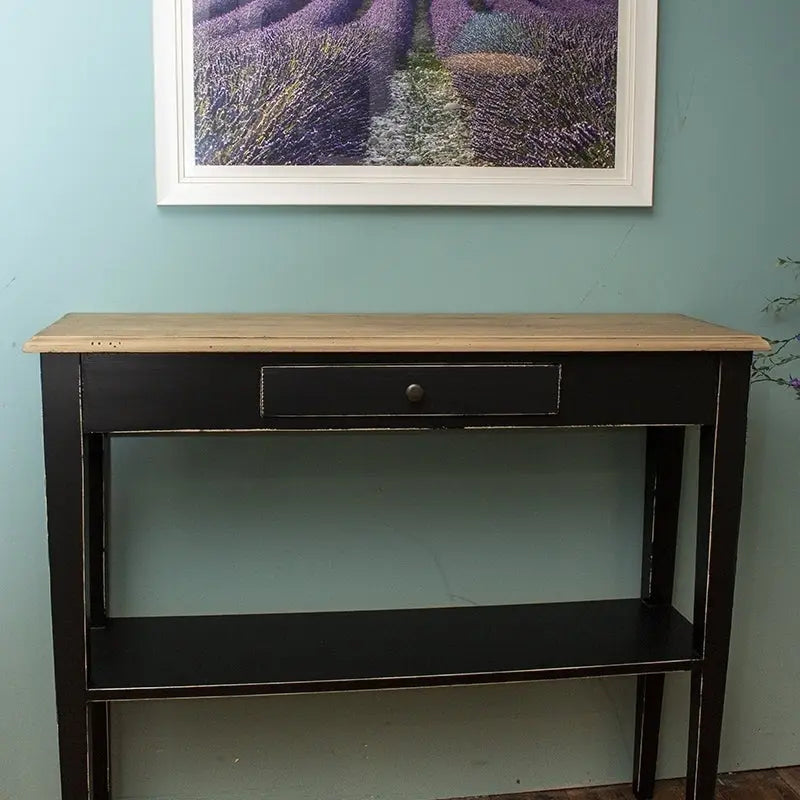 פלטת הקונסולה בגוון עץ ובסיס הקונסולה בצבע שחור, שילוב של 2 צבעים שנותנים טוויסט בעיצוב.