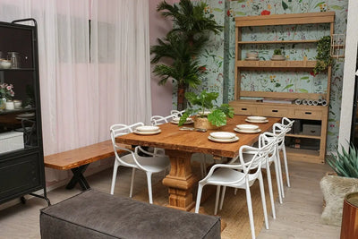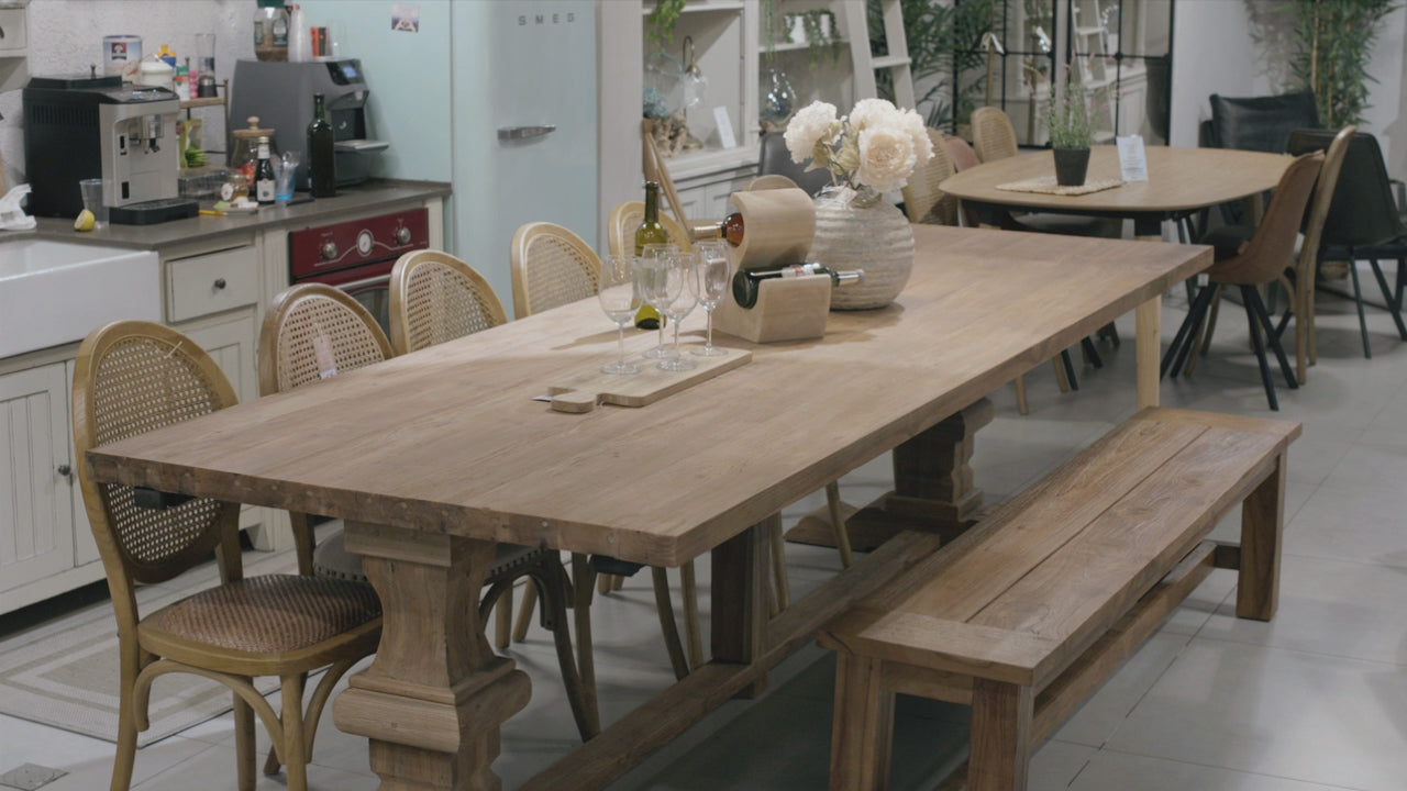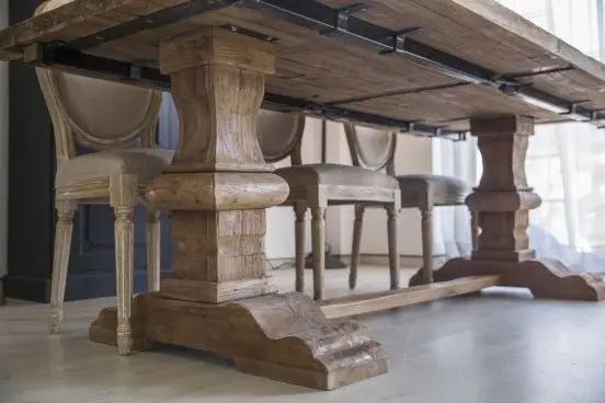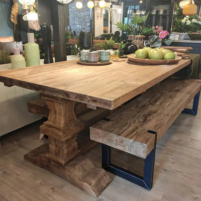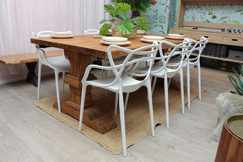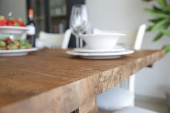 שולחן אוכל אבירים מעץ טיק ממחוזר איכותי ומרשים ייבוא מאינדונזיה