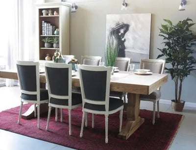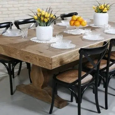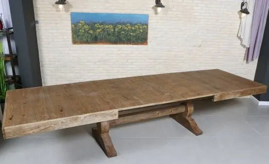 שולחן אוכל מסוגנן ויפהפה במראה כפרי, יוקרתי ומרשים. רגל השולחן והקורה עשויים מעץ אלון מלא, בעוד הפלטה הפנימית עשויה מפורניר אלון לטובת פתיחה קלה של שולחן האוכל. מסגרת השולחן עשויה גם כן אלון מלא. שולחן האוכל נפתח באמצעות 4 חלקים של 48 ס"מ כל אחד, ומגיע עד לאורך של 440 ס"מ. אספקה תוך 45 ימי עבודה. השולחן מתאים ל12 סועדים במצב סגור ועד 22 סועדים במצב פתוח .