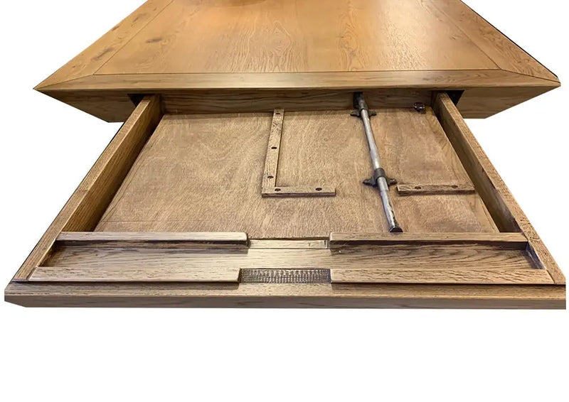 שולחן האוכל נפתח באמצעות 2 פתיחות שנמצאות במגירה פנימית בתוך השולחן . כל פתיחה היא 50 ס"מ כל אחת, השולחן עם הפתיחות מגיע עד לאורך של 320 ס"מ