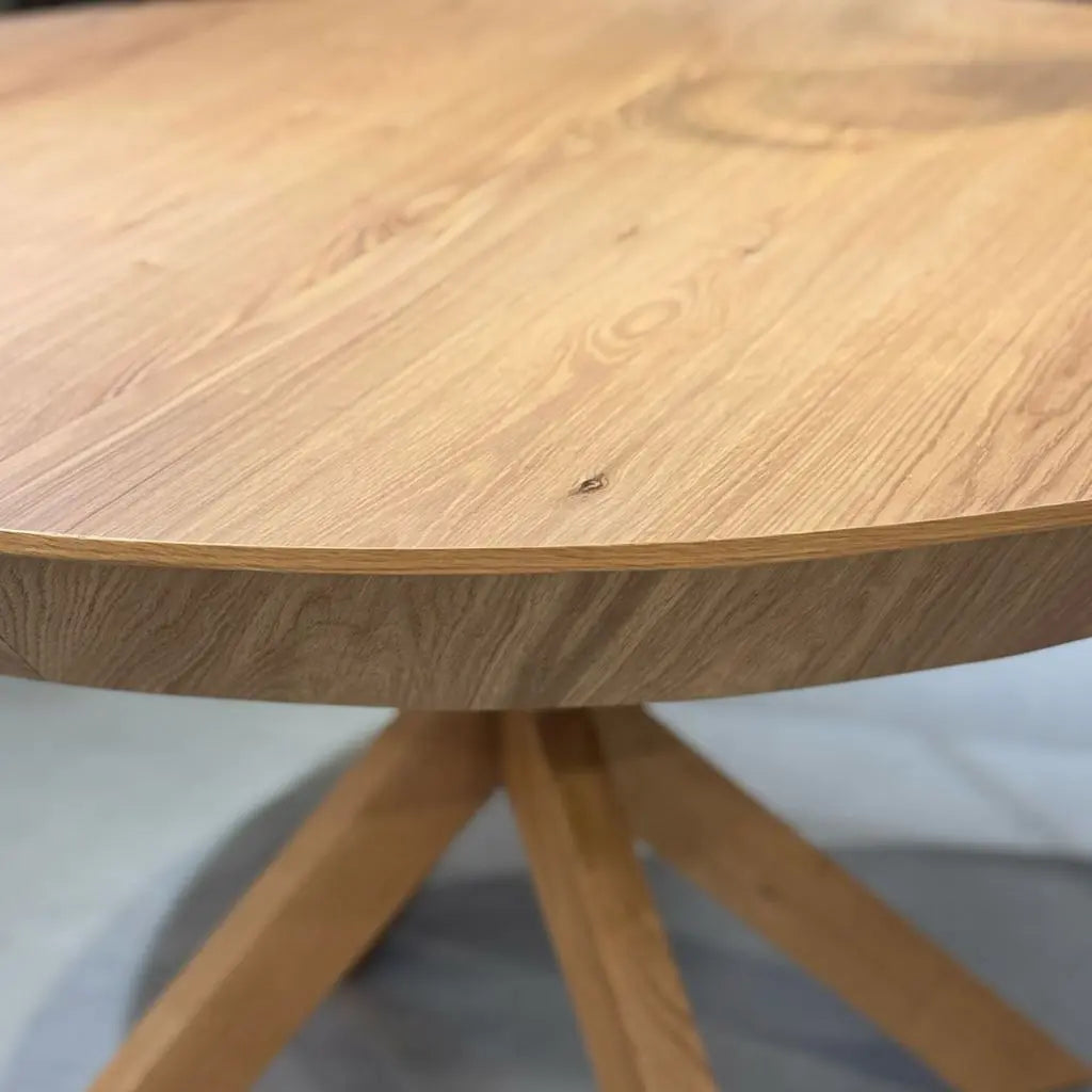 השולחן עשוי פורניר אלון טבעי איכותי, המעניק לו מראה חם ומזמין. העיצוב המודרני של השולחן משתלב בצורה מושלמת בכל סגנון עיצובי, ומוסיף נופך של אלגנטיות לכל פינת אוכל.