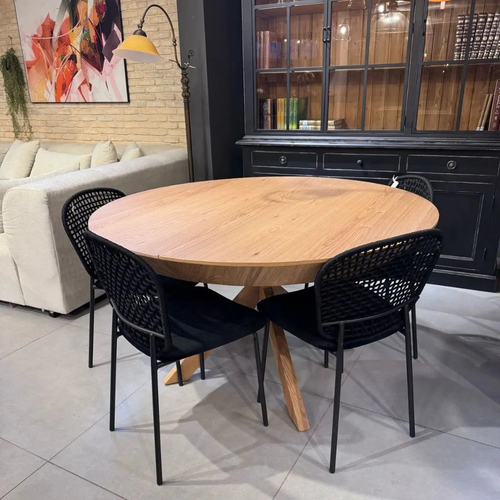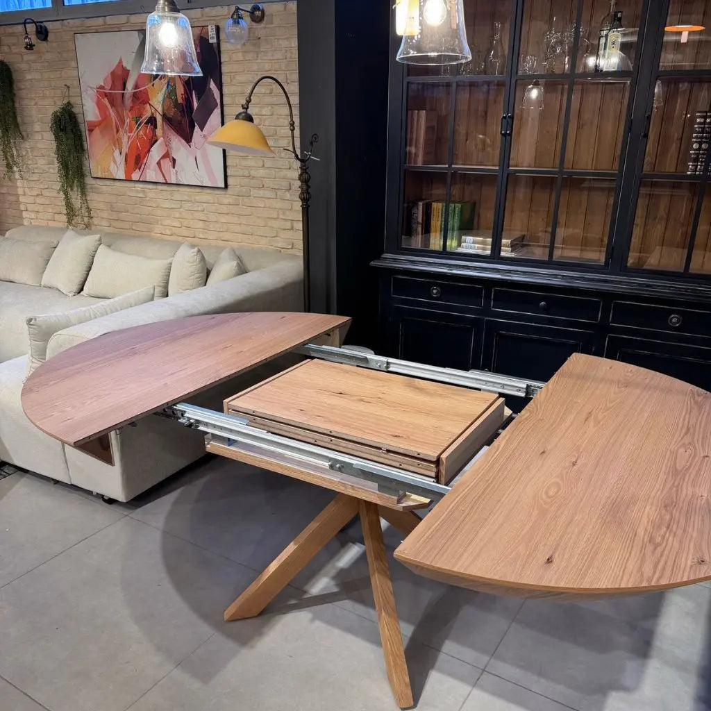 שולחן אוכל עגול נפתח עם 2 פתיחות דגם רימון