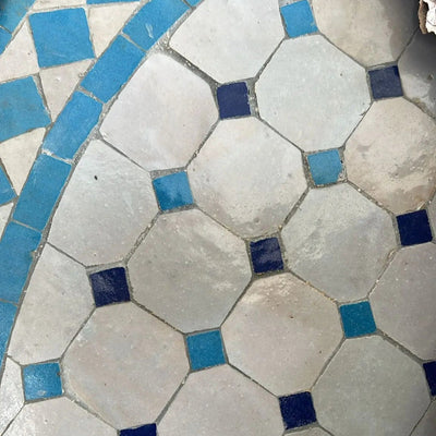 שולחן הפסיפס המרוקאי שלנו הוא פריט אומנותי מרהיב המשלב מסורת עתיקת יומין עם עיצוב מודרני. השולחן עשוי בטון עמיד ומעוטר באריחי פסיפס ייחודיים - עבודת יד מסורתית.