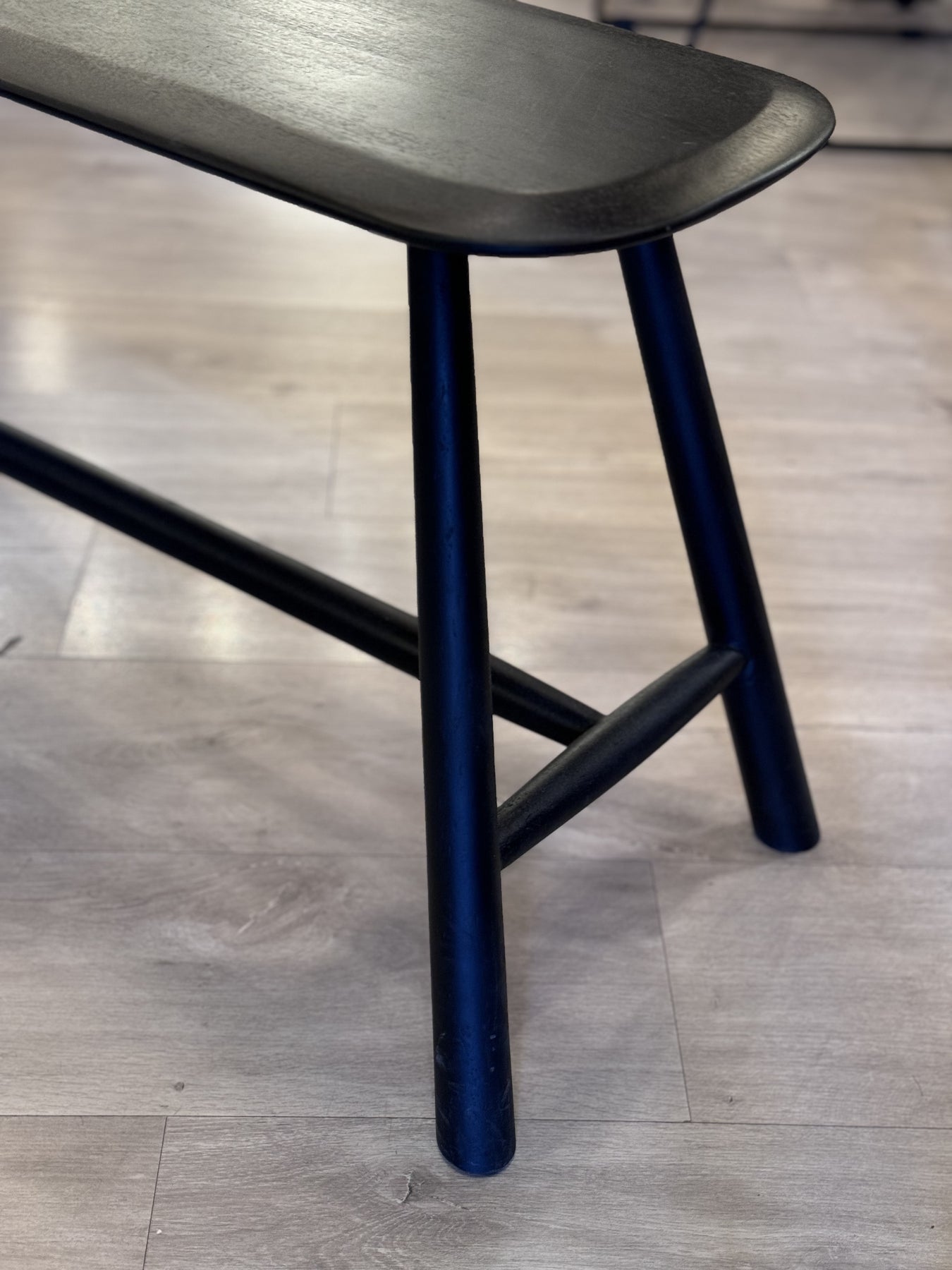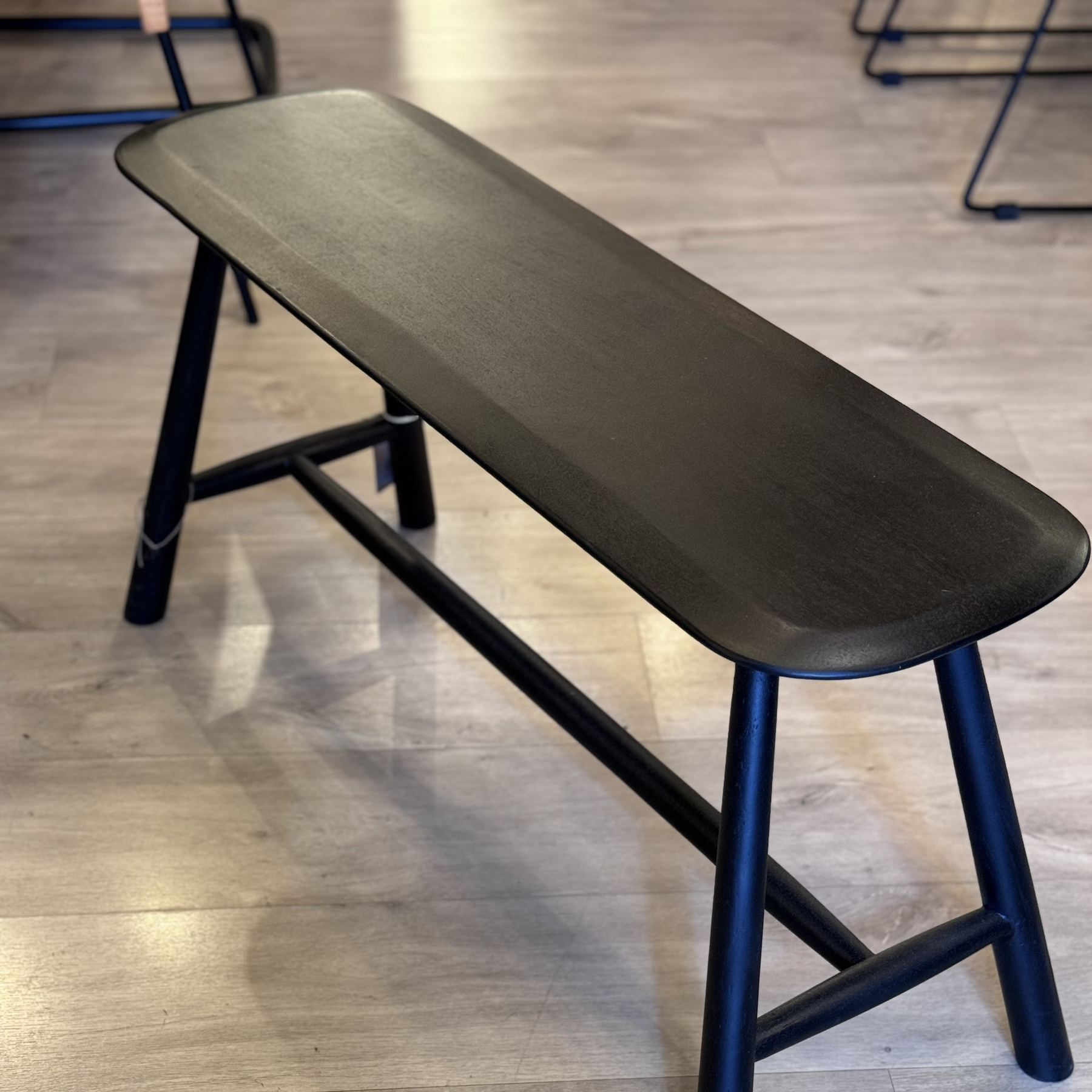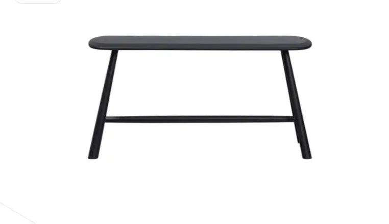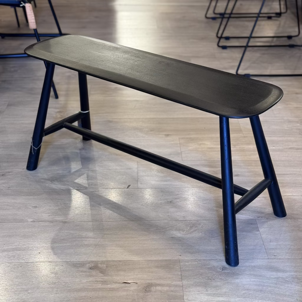 צד אופנתי מעוצב עם פינות עגולים. השולחן עשוי מעץ מנגו צבוע בצבע שחור ספסל