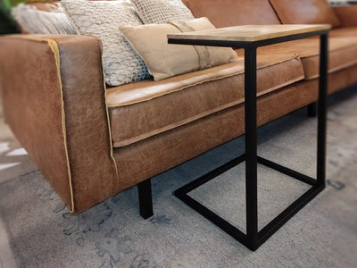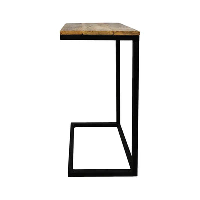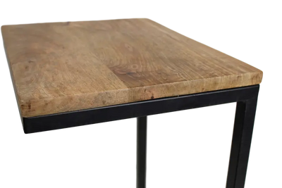 השולחן מעוצב בסגנון מודרני תעשייתי, בזכות השילוב בין העץ והברזל.
