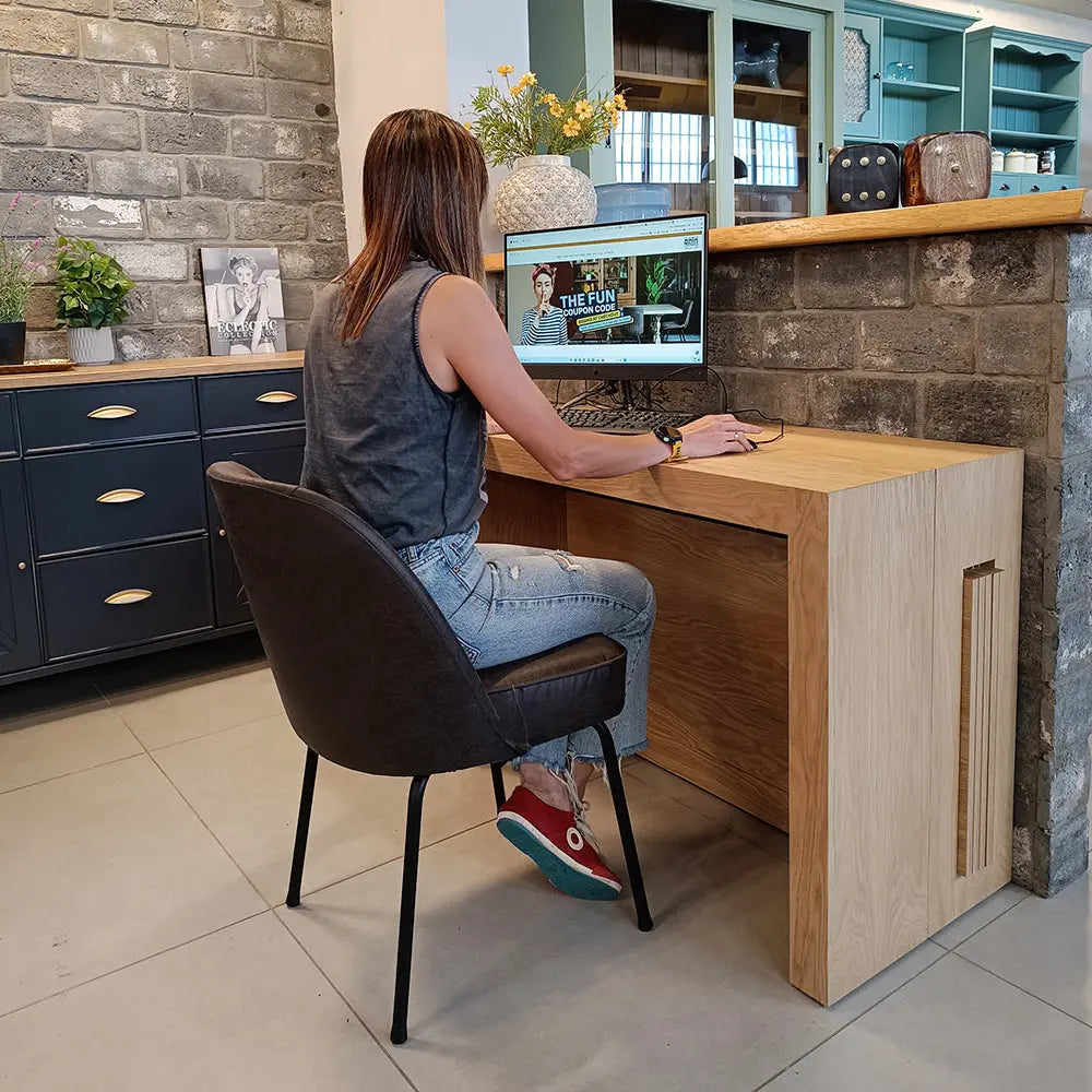 הקונסולה בסרטון מיוצרת מפורניר אלון גוון טבעי.