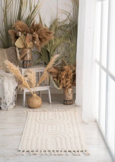 שטיח עבודת יד בשילוב אריגה עם פרנזים