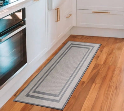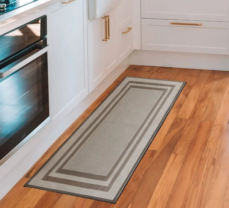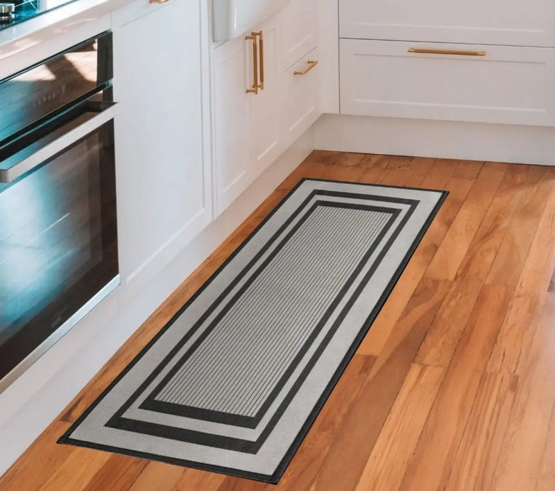 שטיח מונע החלקה מעוצב , בדוגמאות שרה שתי וערב בגווני בז, אפור או שחור
