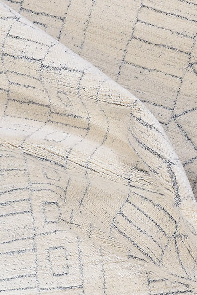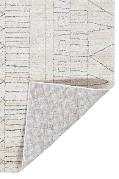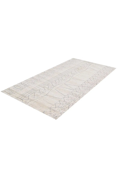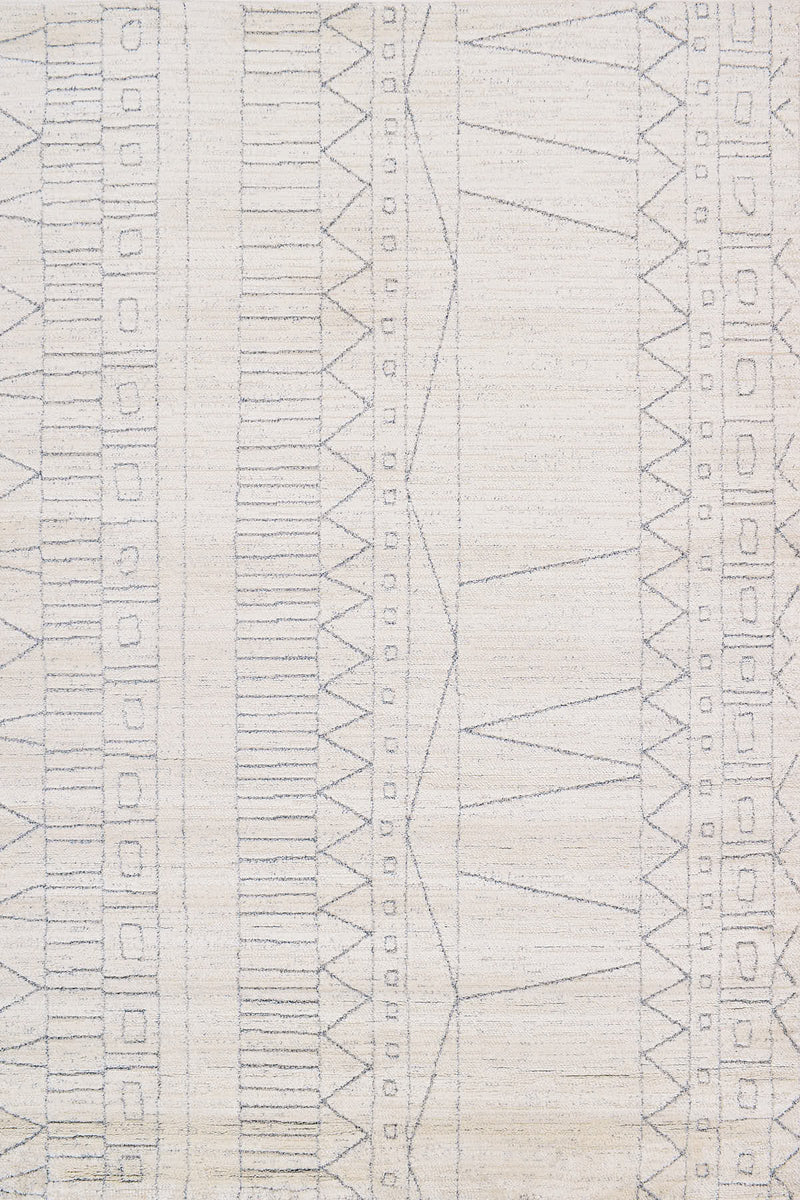 שטיח לבן מהקולקציה החדשה של מאטיס, המעוצב בסגנון אתני עם צורות גיאומטריות בהשראת הסגנון המרוקאי. השטיח עשוי חוטי פוליאסטר משולב בחוטי פוליפרופילן הארוגים במכונה, ומשלבים את הצבע הלבן והאפור עם דוגמאות מושלמות לאורך השטיח