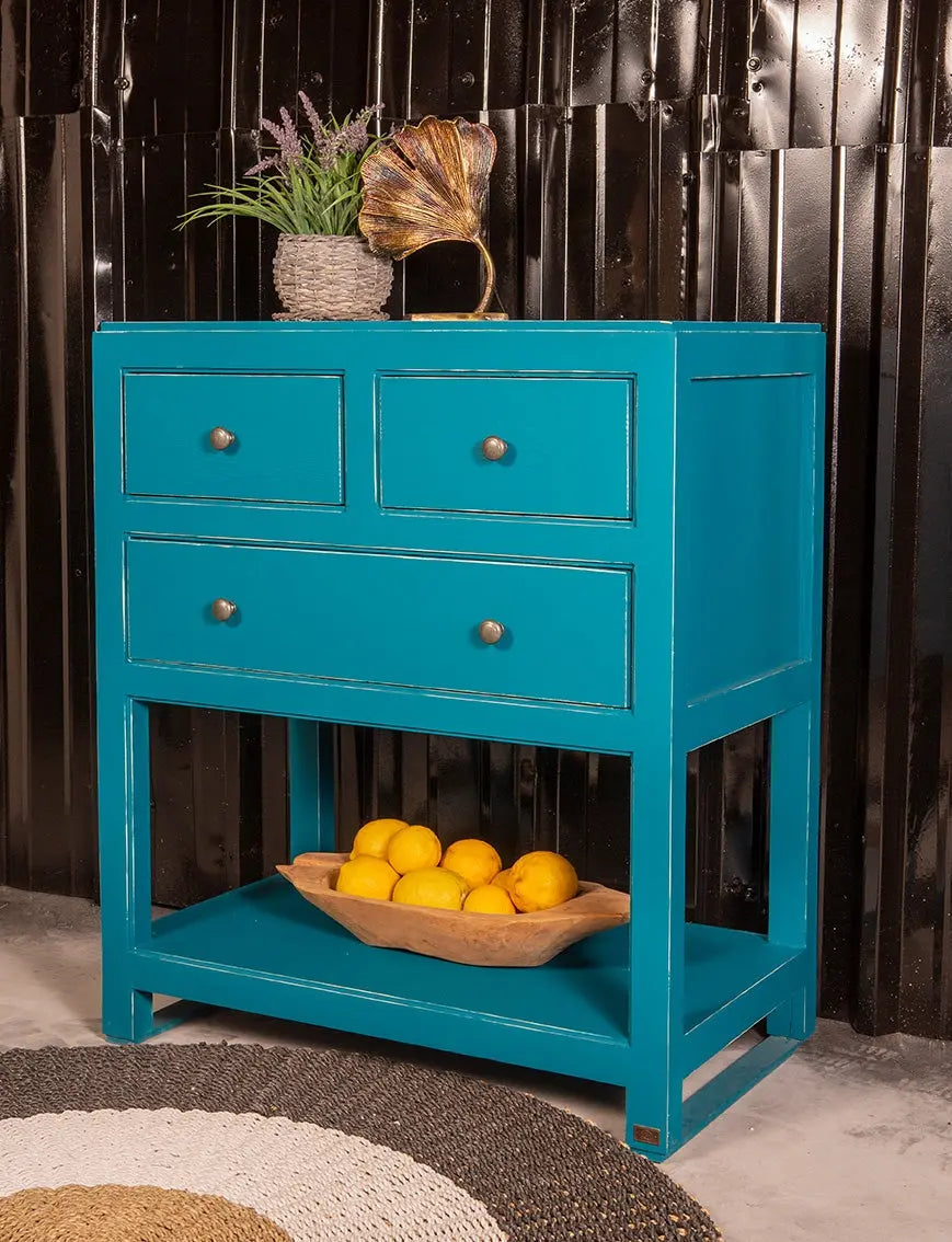 לשידה 3 מגירות בעלות ידיות ברזל מעניינות