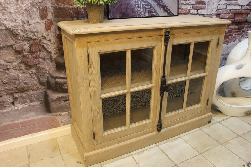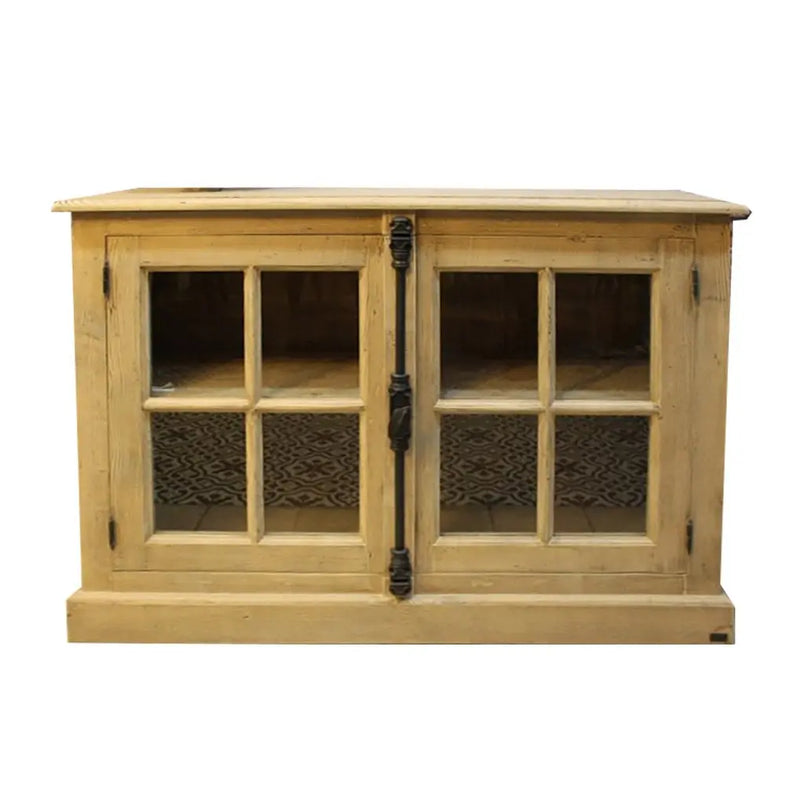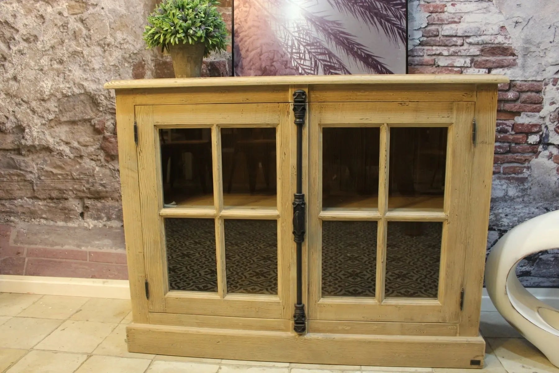 השידה בעלת מדפי אחסון גדולים ועמוקים. מעוטרת במנגנון נעילה דקורטיבי ובדלתות זכוכית.